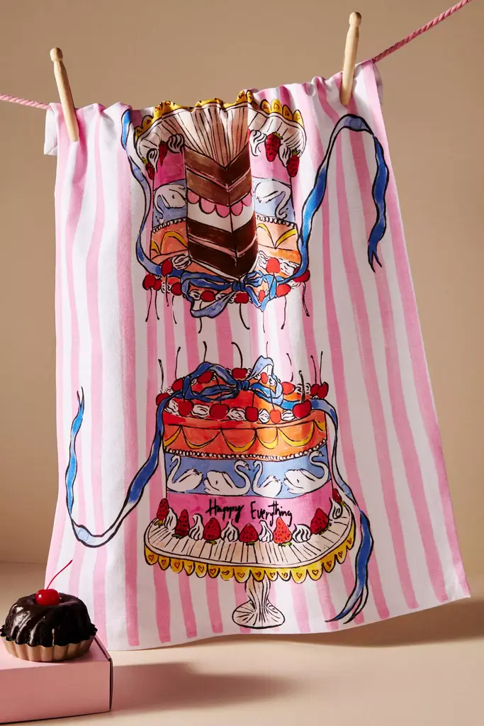 Remind yourself to celebrate everything that makes you happy with this whimsical dish towel.