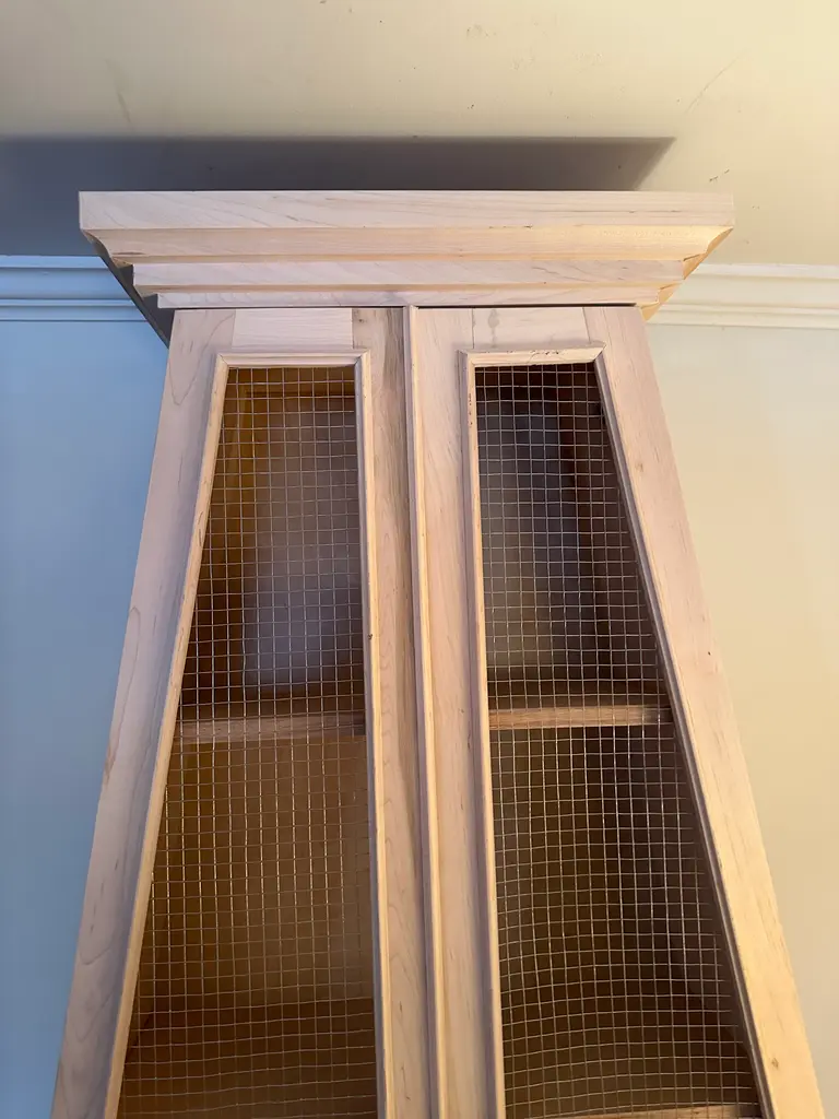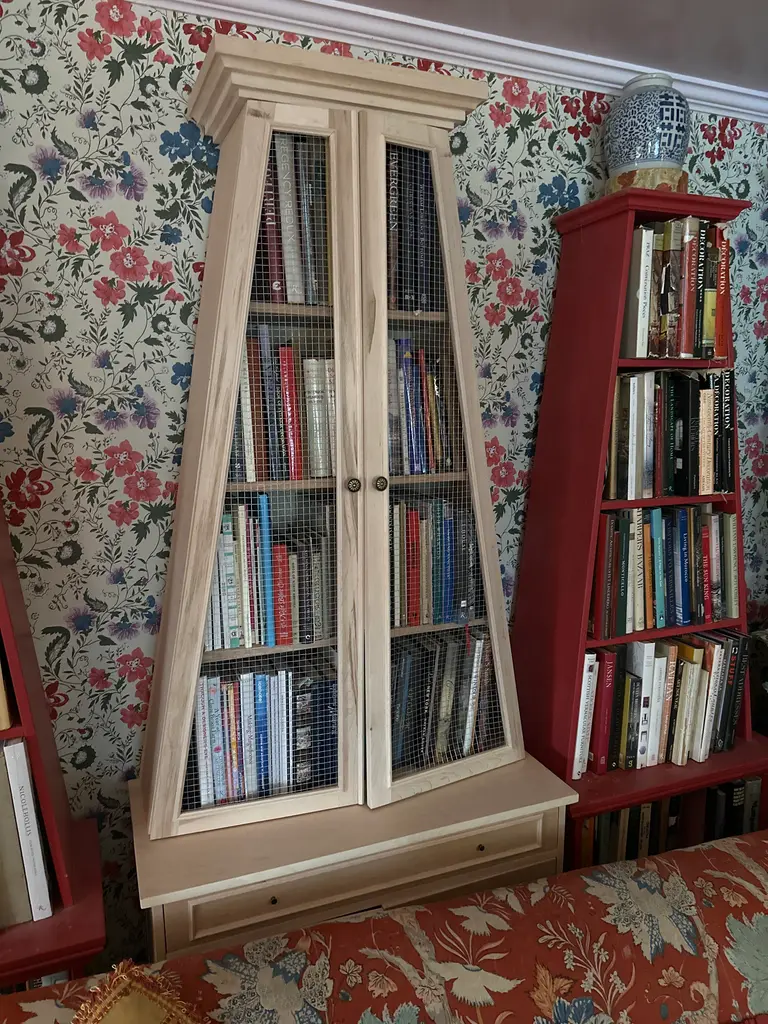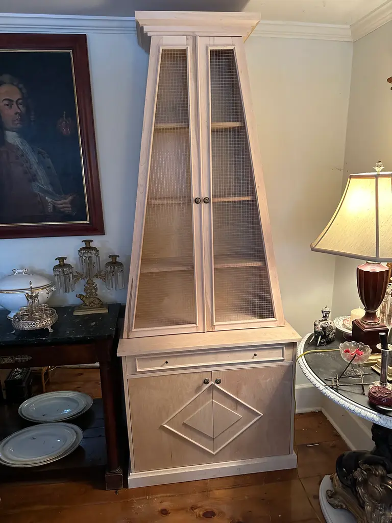 Handmade by our upstate New York craftspeople. These bespoke bookcases are a very stylish alternative to storage. Be it hooks or porcelain or taxidermy Birds they will provide an attractive home for your collections. Styled After a Hollywood regency original that I have since sold This is a much higher quality version. It’s comes in unadulterated maple which can be left as is, stained or painted