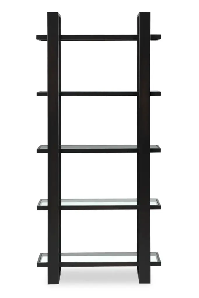 Light distressing and contrasting finishes give this airy, open etagere bookcase its signature style. This mixed-material design features an aged steel frame with light distressing that complements the 6 clear glass display shelves. Driftwood-finished surrounds on each shelf adds contrast we can't stop talking about. With ample space to show off framed photos, plants, accent items, and of course books, this design is our pick for a must-have, everyday essential.