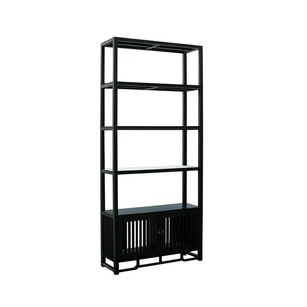 Black Shutter Doors Minimalist Bookcase Display Cabinet Etagere