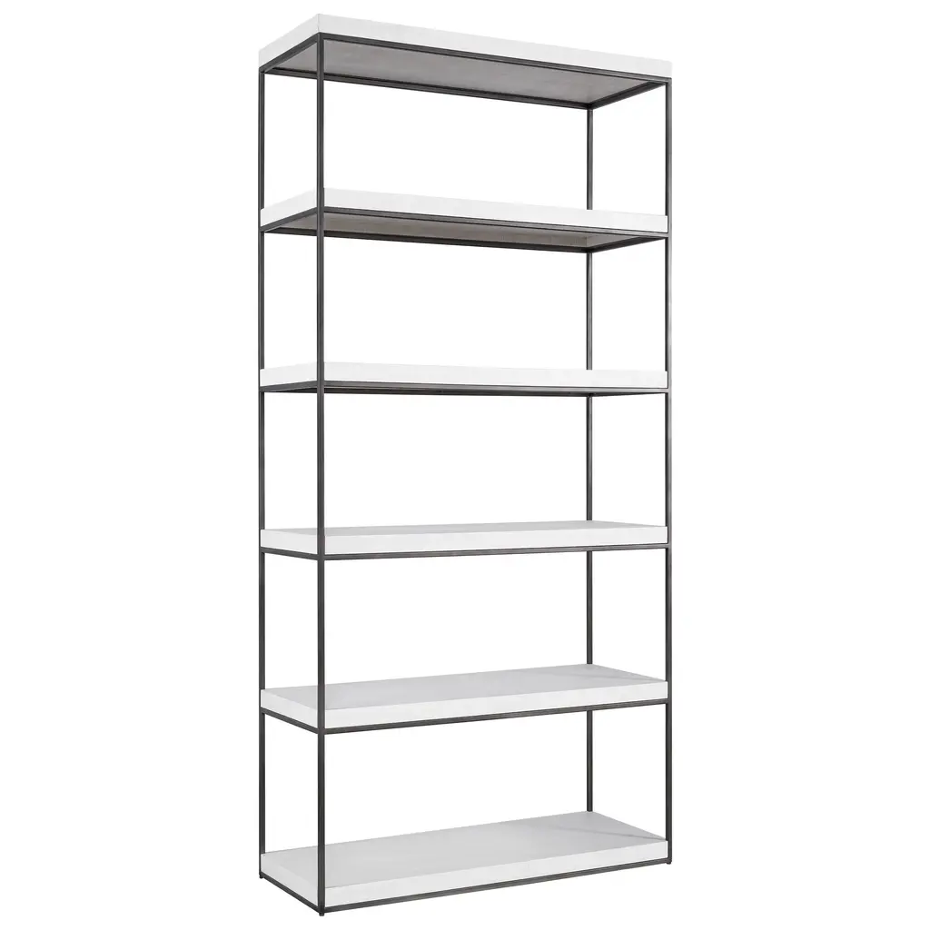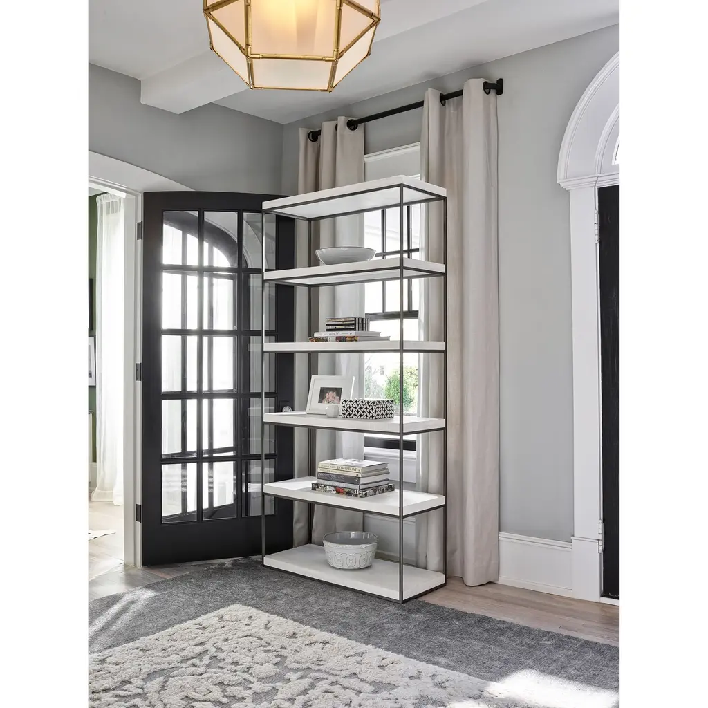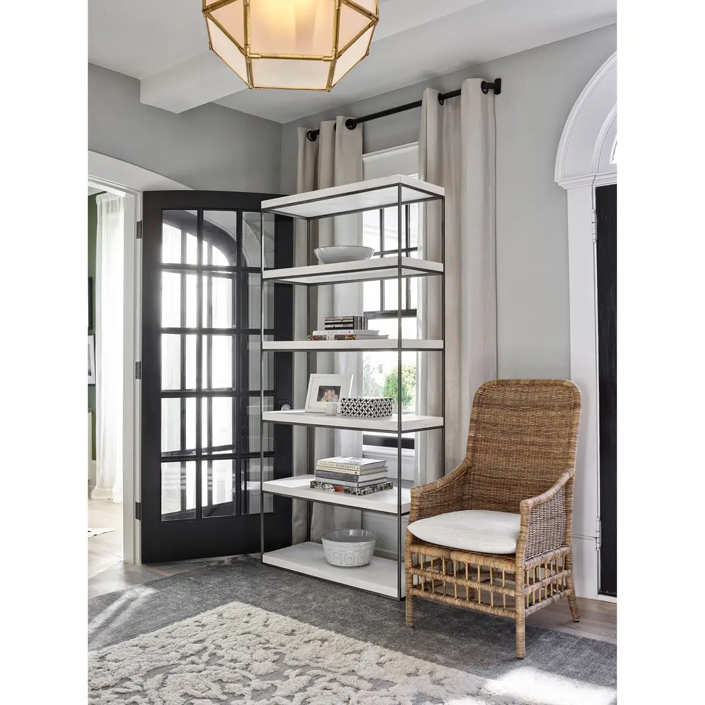 Boasting open-air shelves encased in a clean silhouette, the Braxton Etagere offers an abundance of storage space paired with a modern, mixed material body.