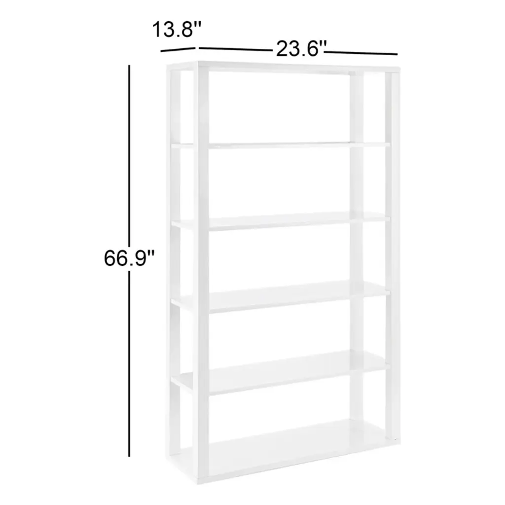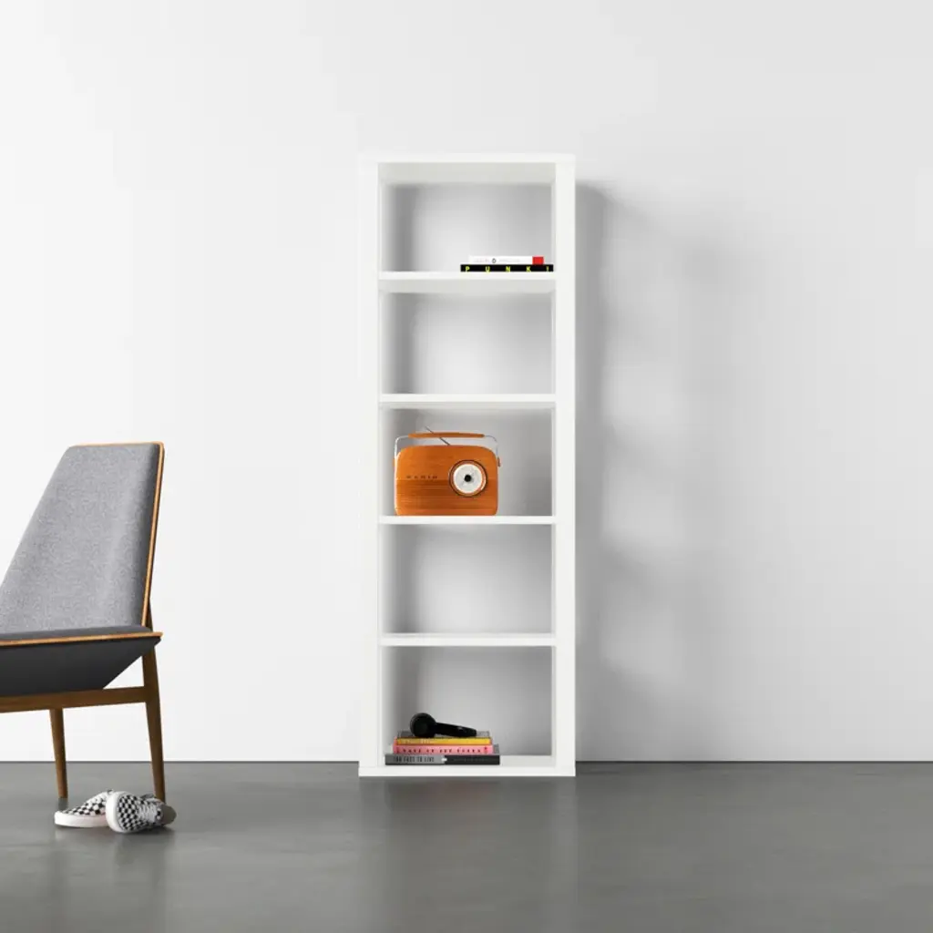 Minimal lines, contemporary vibes – store it all in statement style. Combining a pared-back silhouette with a simple finish, this etagere bookcase edits the visual clutter out of your library. Its five shelves deliver generous storage + styling space, while the open sides let light through – ideal if you want to mix some greenery in with your lit.