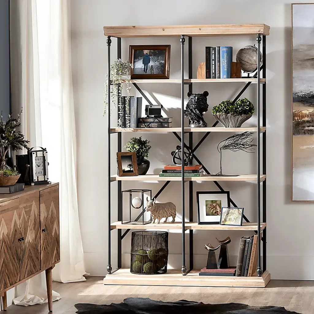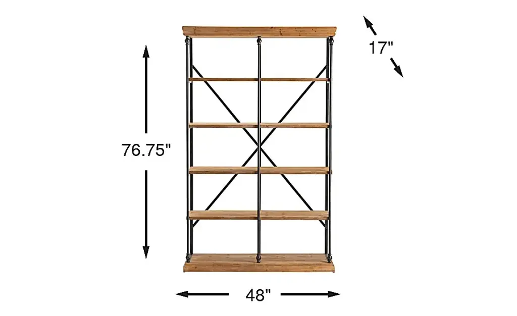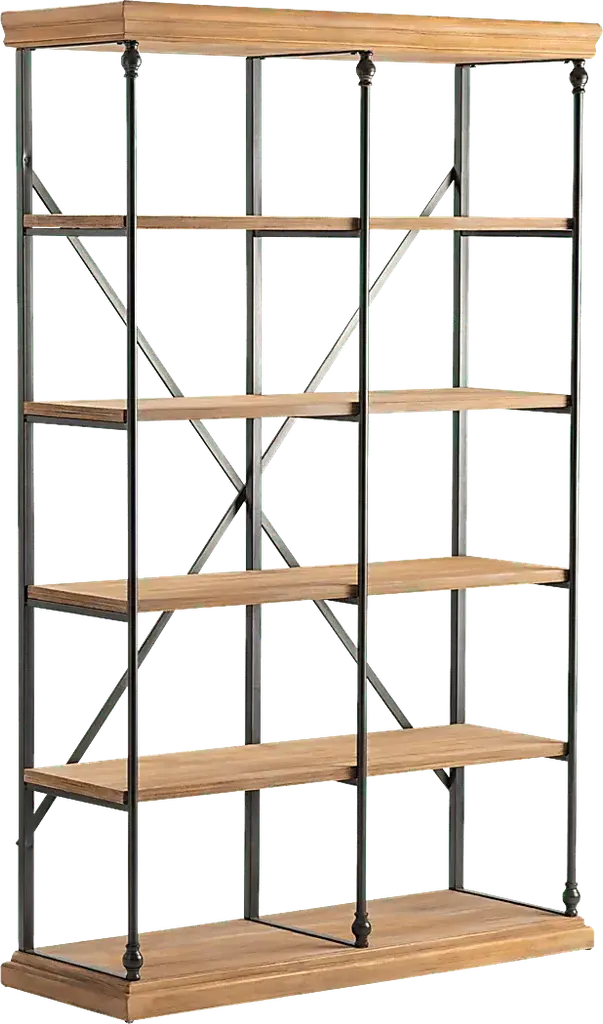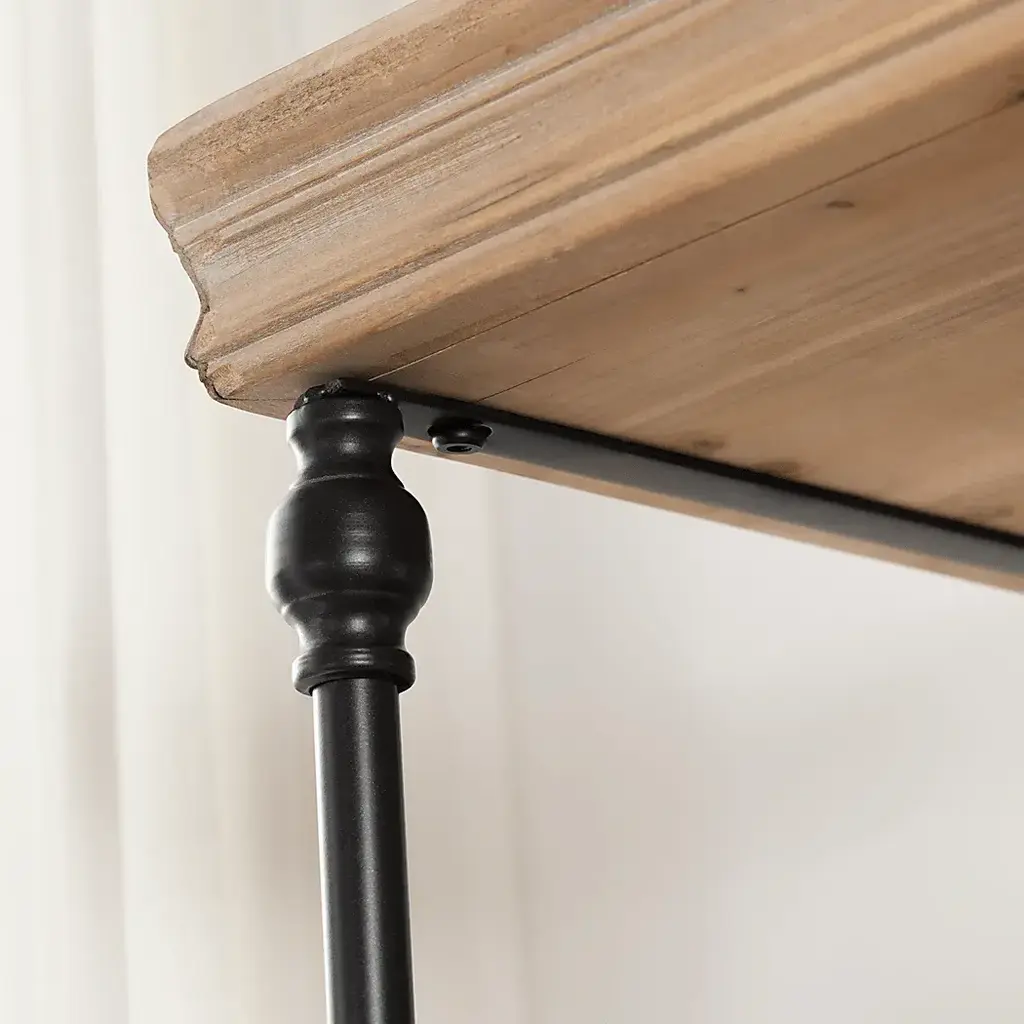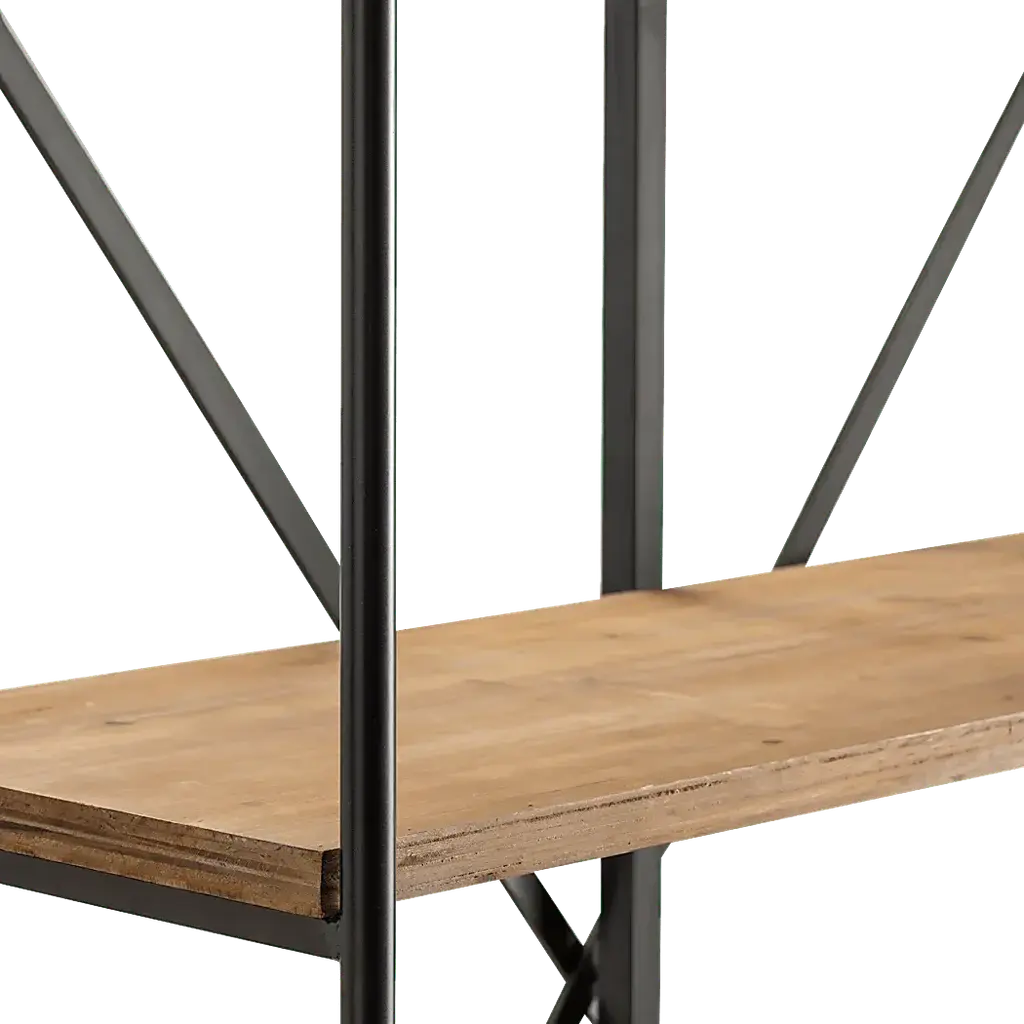 Marvelous industrial inspiration finds form in each of the Charleswood etagere's flawless details as every glance rewards closer inspection with fresh fascination. A traditional love letter to French vintage design, black iron supports hold solid brown birch wood shelves in a nostalgic blend of the natural and the engineered. At either end of each front-facing support are decorative iron caps, drawing the eye to the moulded trim of the top and base. Completing the classic silhouette, an X-shaped cross bar provides stability.