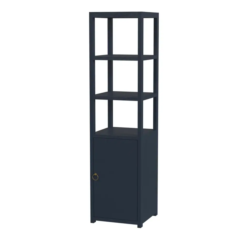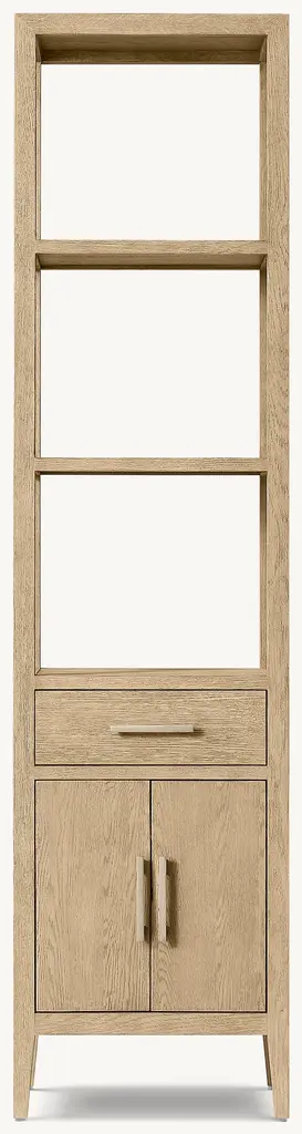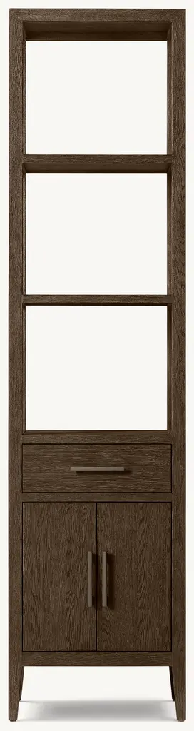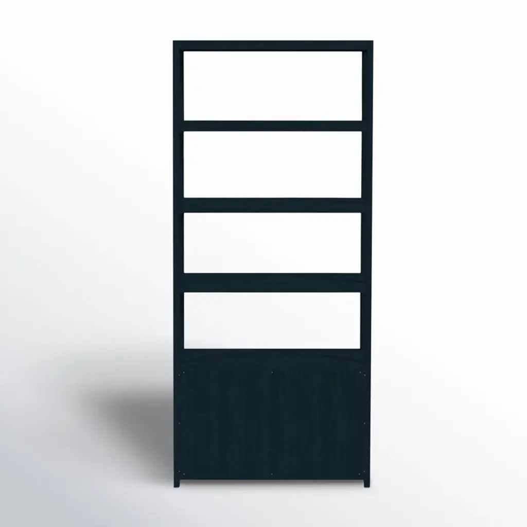 With its crisp, transitional design, our freestanding bookcase brings a dynamic look and plenty of storage to your home. The kiln-dried wooden frame comes in a wire-brushed finish that complements both vibrant and neutral color palettes. Metal ring pulls on the lower cabinet add a mod-inspired touch, and the multiple shelves above let you organize books and décor. A wall anchor is included and recommended for stability.
