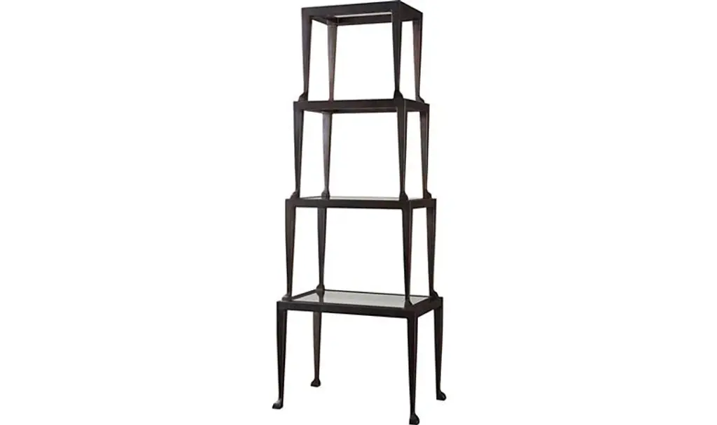 The Galleria Etagere captures the imagination with a classic arching form inspired by the gallerie carts of grand European hotels. Its inset glass shelves are well-suited to hold your favorite heirlooms and curiosities.