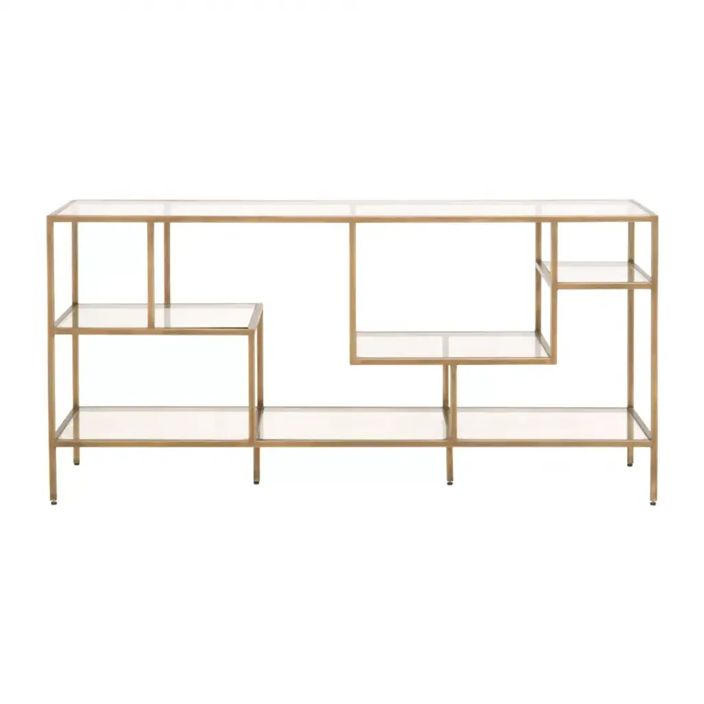 Glass And Gold Metal Accents Etagere Horizontal Display Bookcase