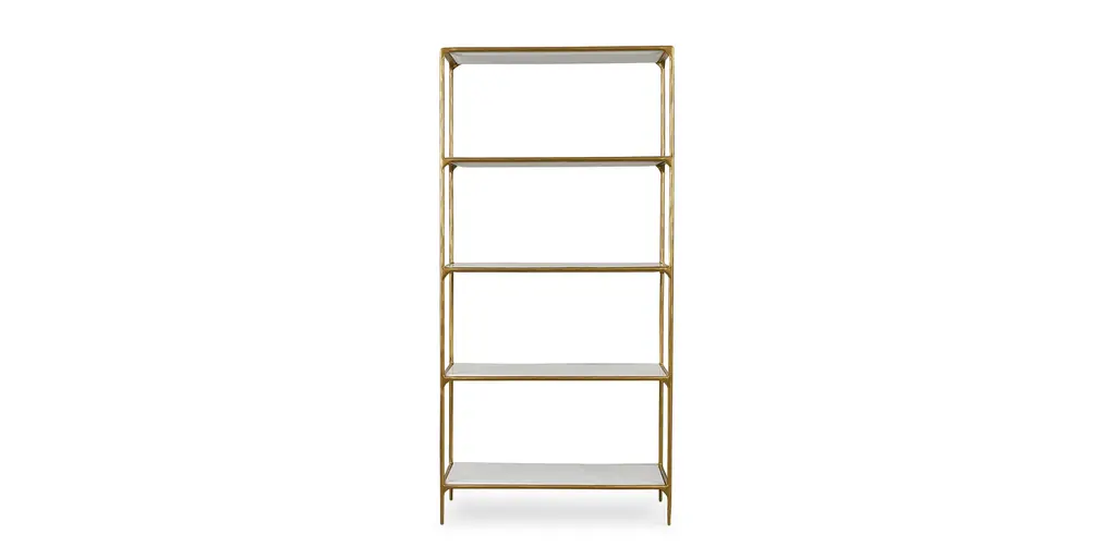 Clearly speaking quiet luxury, the Keswick tagre gleams with pride of purpose as a building block piece of furniture for any room in your home. With a hand-distressed iron frame supporting shelves of Banswara marble, its sleekly sculptural design offers a distinctive setting for display and open storage. Use on its own or in a pair, selecting either black iron or textured bronze for the svelte frame. The highly prized Banswara marble shelves are sealed for protection, although coasters are still recommended for drinks or potted plants. See the rest of the Keswick Collection for a wide array of occasional tables to augment your etagre.
