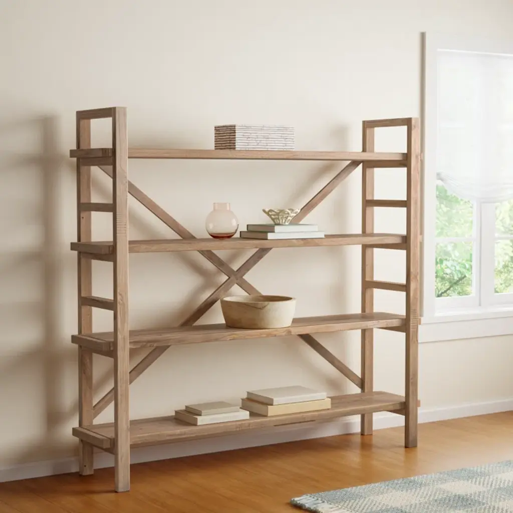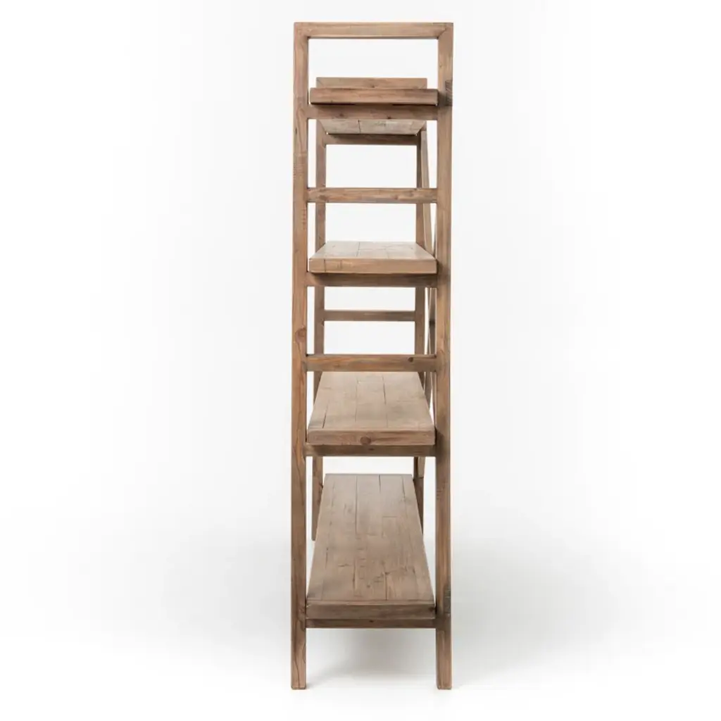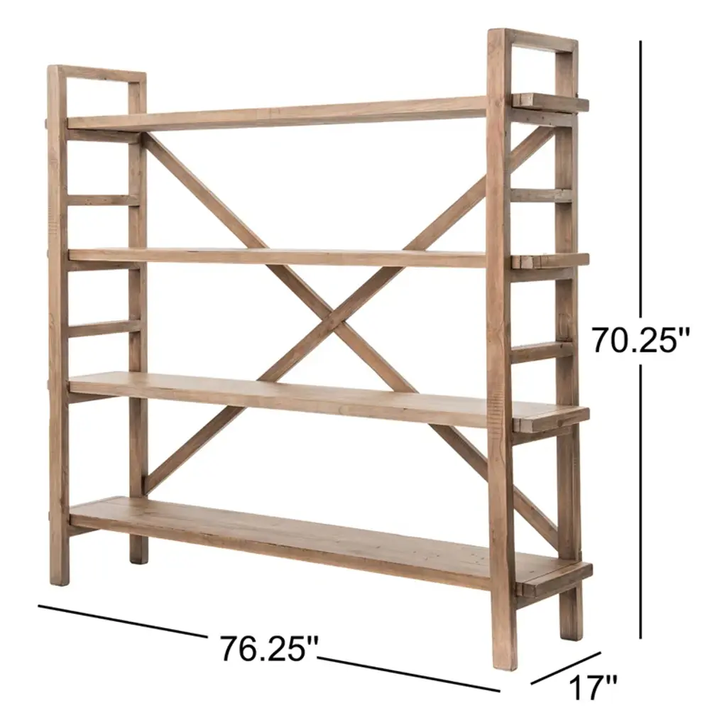 This 70'' industrial-style bookshelf is a versatile addition to your home, offering ample space to showcase your favorite reads, decor, and more. It's crafted from reclaimed pine wood, highlighting the natural wood grain and knots for a touch of rustic charm. The horizontal frame features four adjustable shelves, allowing you to customize the layout to suit your needs. We love that its open design creates an airy feel. Plus, a wall anchor is included for added stability. Pair this bookshelf with other industrial accents for a cohesive look in your living room or office.