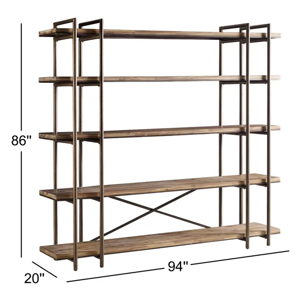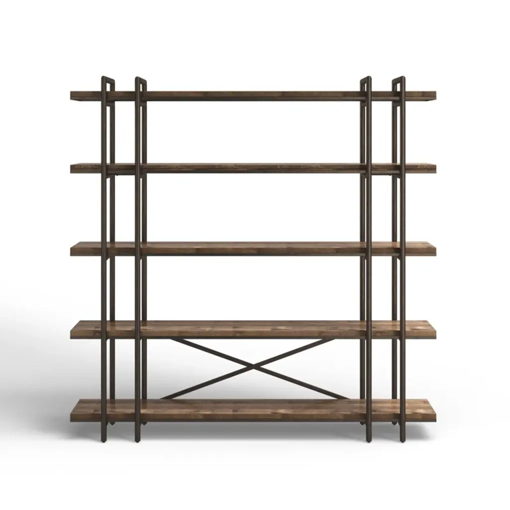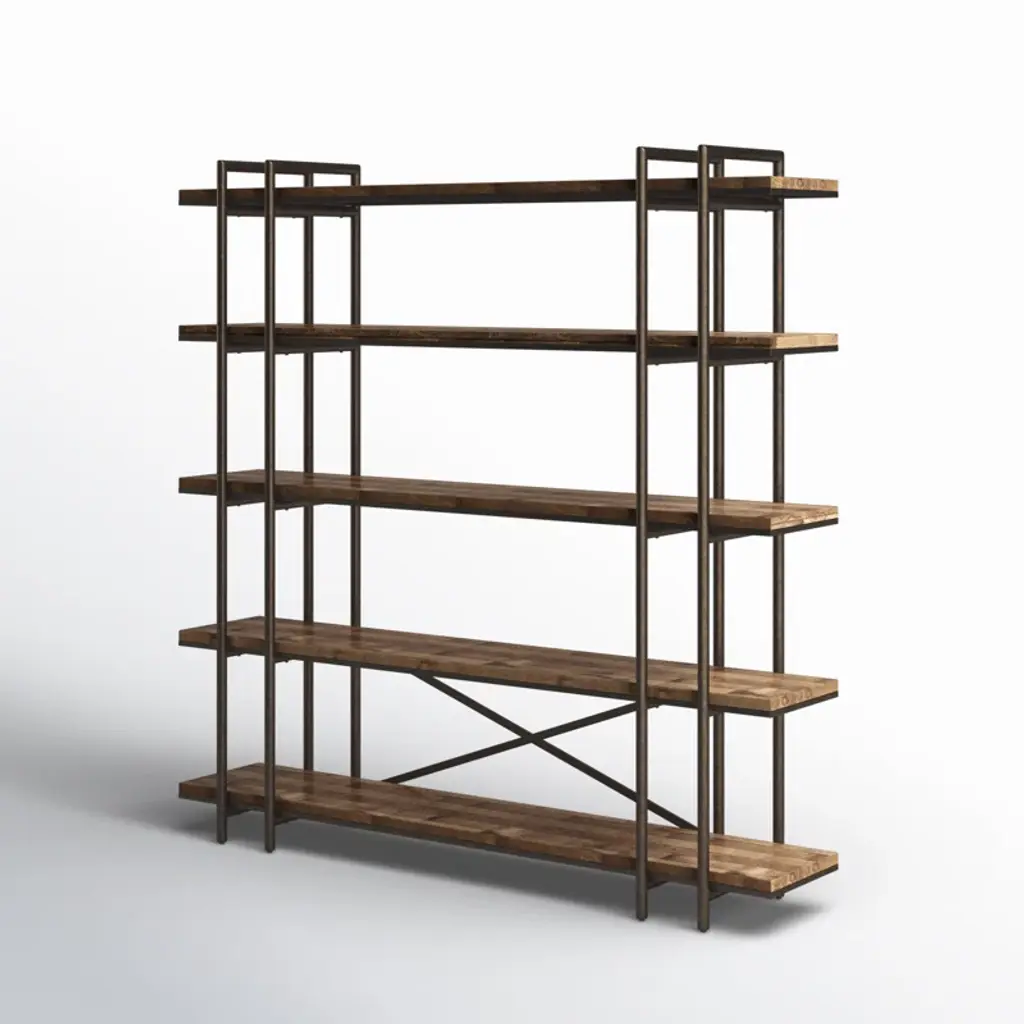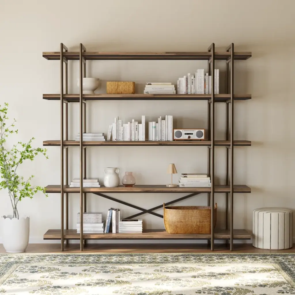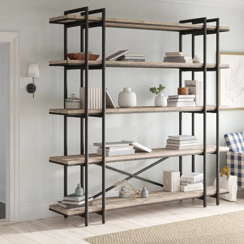This bookcase is a fresh take on a traditional farmhouse favorite with its clean-lined silhouette and industrial character. It's crafted from sturdy, high-quality metal that contrasts nicely against each solid wood shelf's natural wood grain texture. Its open design lets you proudly display framed photos, prized knickknacks, and rows of your favorite antique books, making this furniture piece an excellent storage solution for an at-home office or den. And the best part of all? This bookcase comes with a tipover restraint, which comes in handy if your little ones tend to get rowdy after dinnertime.