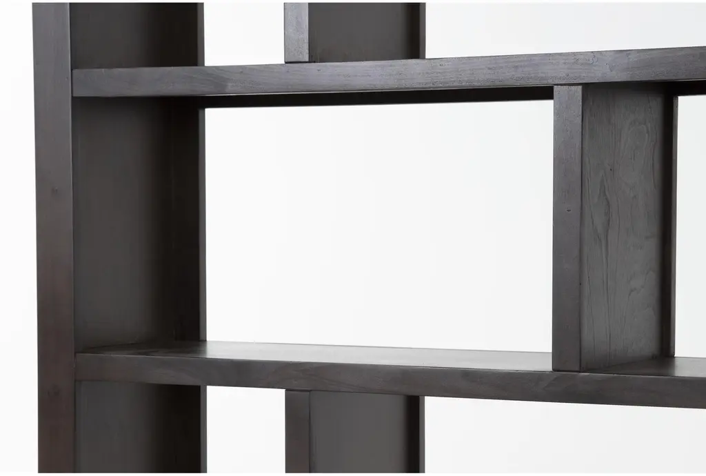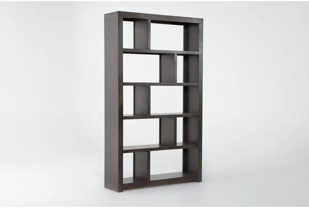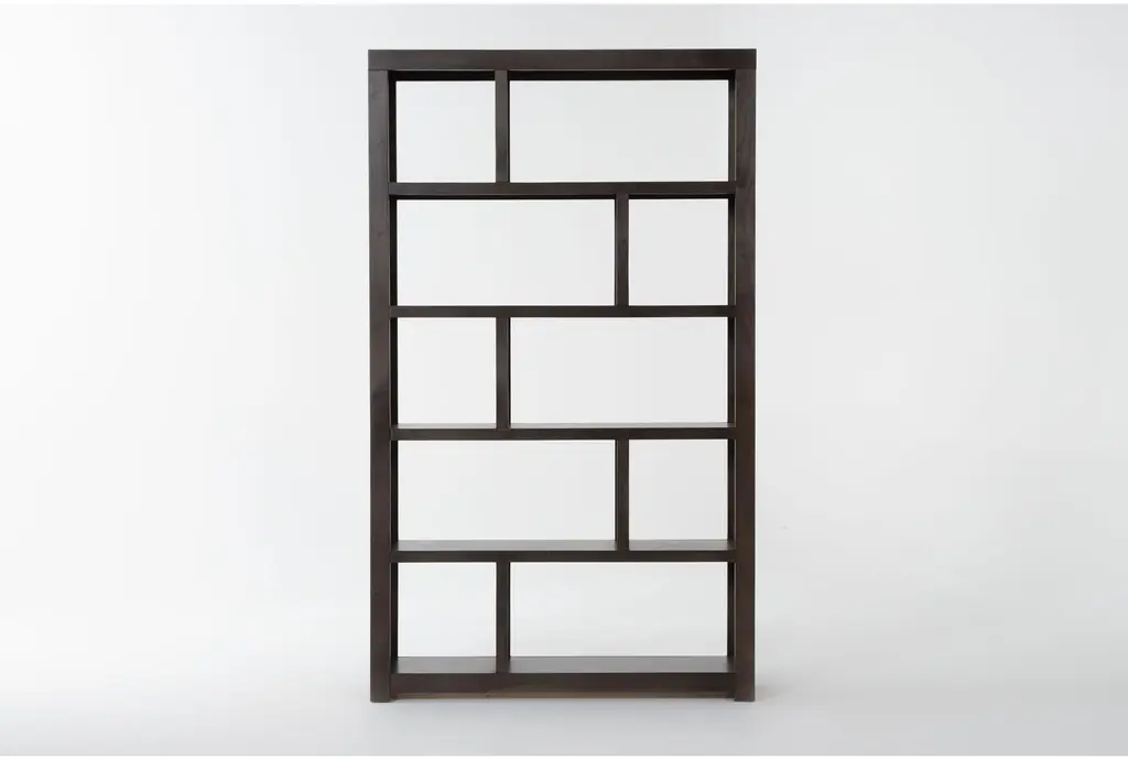 Display and enjoy your prized possessions on our Maddox room divider bookcase. An asymmetrical design adds pizzazz to your personal showcase of treasured tchotchkes, while maple wood and veneers in an espresso finish ensure strength and style.