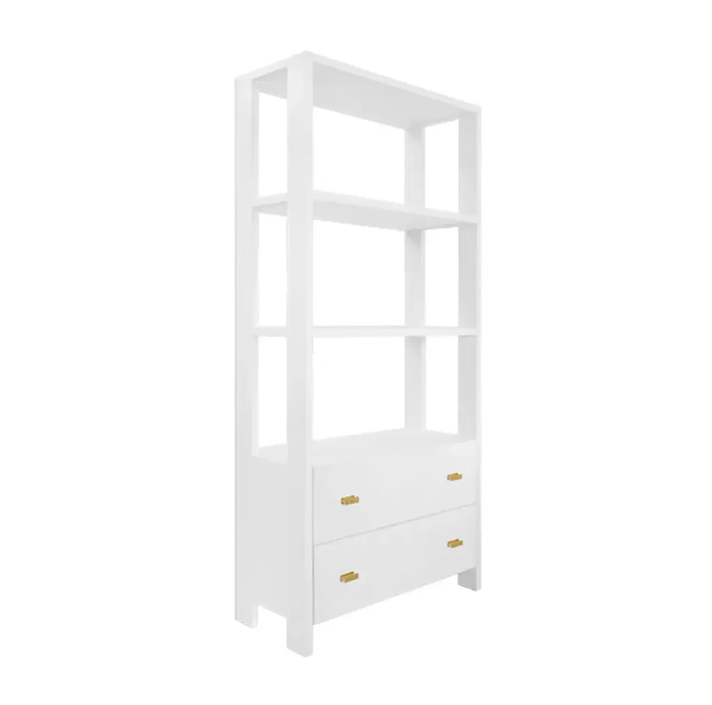 The Davie WH etagere is offered in three breathtaking finishes - matte white, natural oak, and dark espresso oak. Each Davie is adorned with antique brass hardware. The fluted details encompassing the etagere create a mesmerizing touch of whimsy as light dances across its surface. With two spacious drawers, the Davie offers ample storage for your belongings. Perfect for any room - you're hardest discussion will be where to feature the Davie in your space! 36" W X 80.25" H X 16" D Width:36.00" Height:80.25" Depth:16.00"