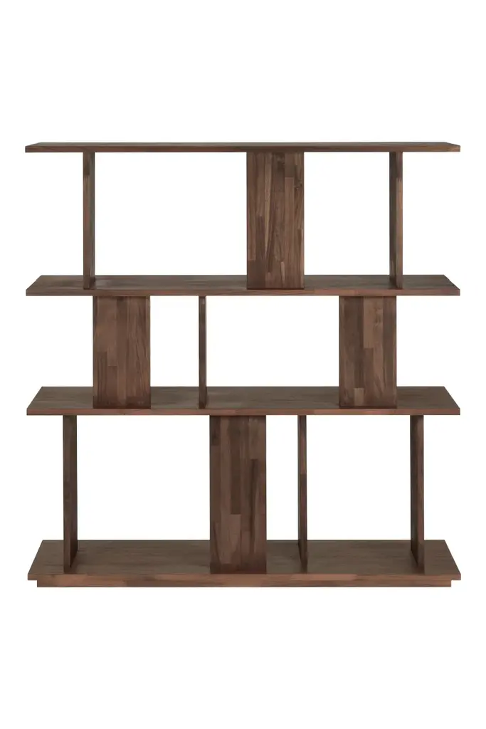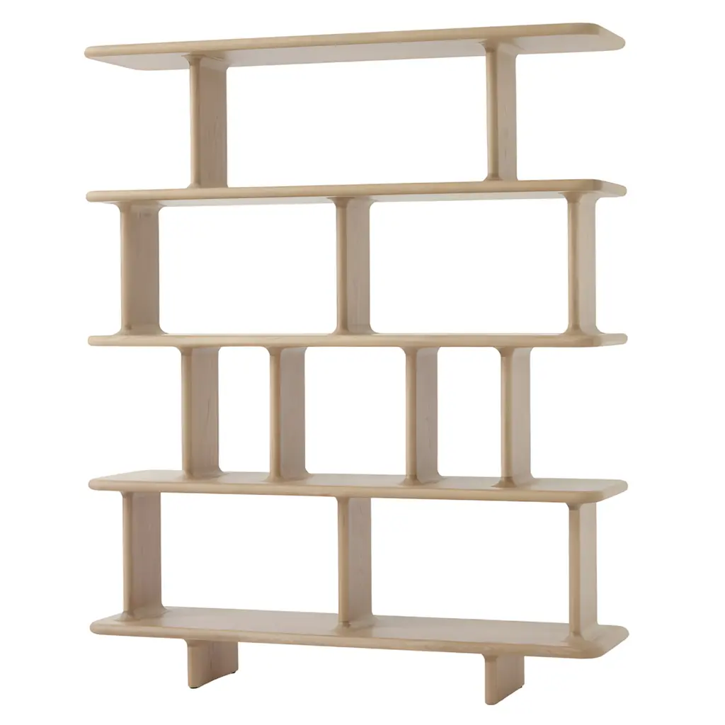 Sculptural solid wood storage? Yes please! This modern display bookshelf features staggered support pieces, with interesting woodgrains and rounded corners for a softer, more approachable look that's the perfect perch for your favorite books and decor pieces.