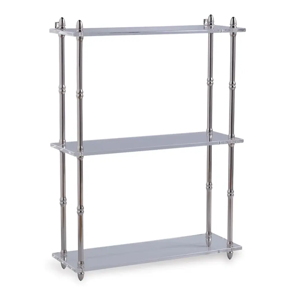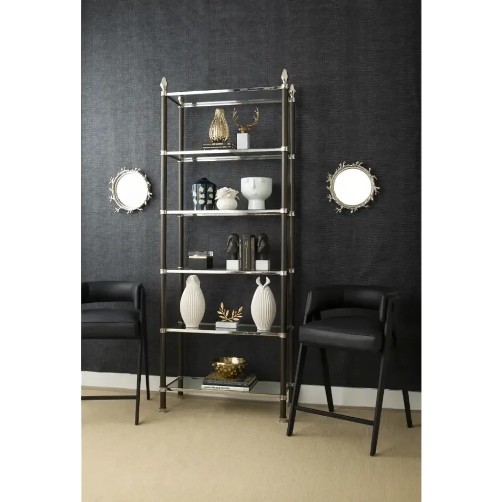With a nod to the Neo-classical, the Pierce Étagère is perfect for showcasing your personal items with a glamorous touch. Mixed finishes add visual interest and dimension as the uprights are finished with bronze, and the frame and accents come in a choice of either solid brass or polished nickel. The slim frame is paired with tempered glass shelves to keep the overall effect feeling nice and light, and topped off with a geometric acorn style finial. The Pierce would easily pull together any living room, office, or bedroom with its classic and timeless simplicity.