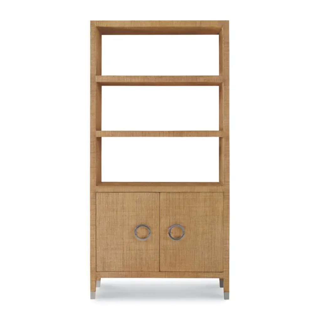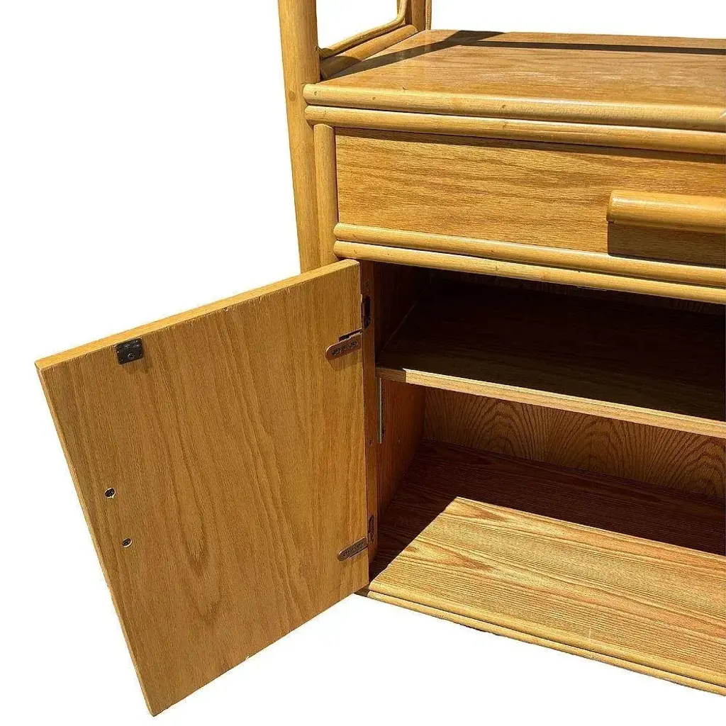 Restored High Style Rattan & Mahogany Etagere Display Curio Cabinet, 2 Available