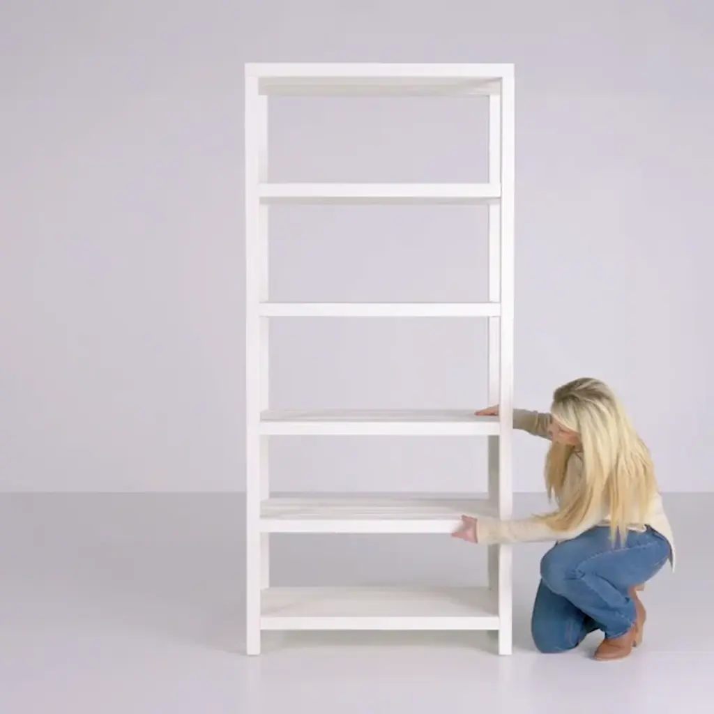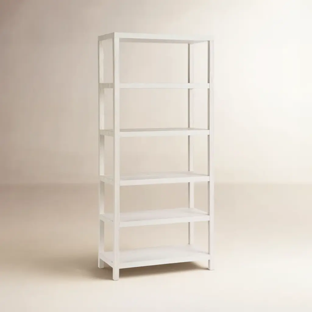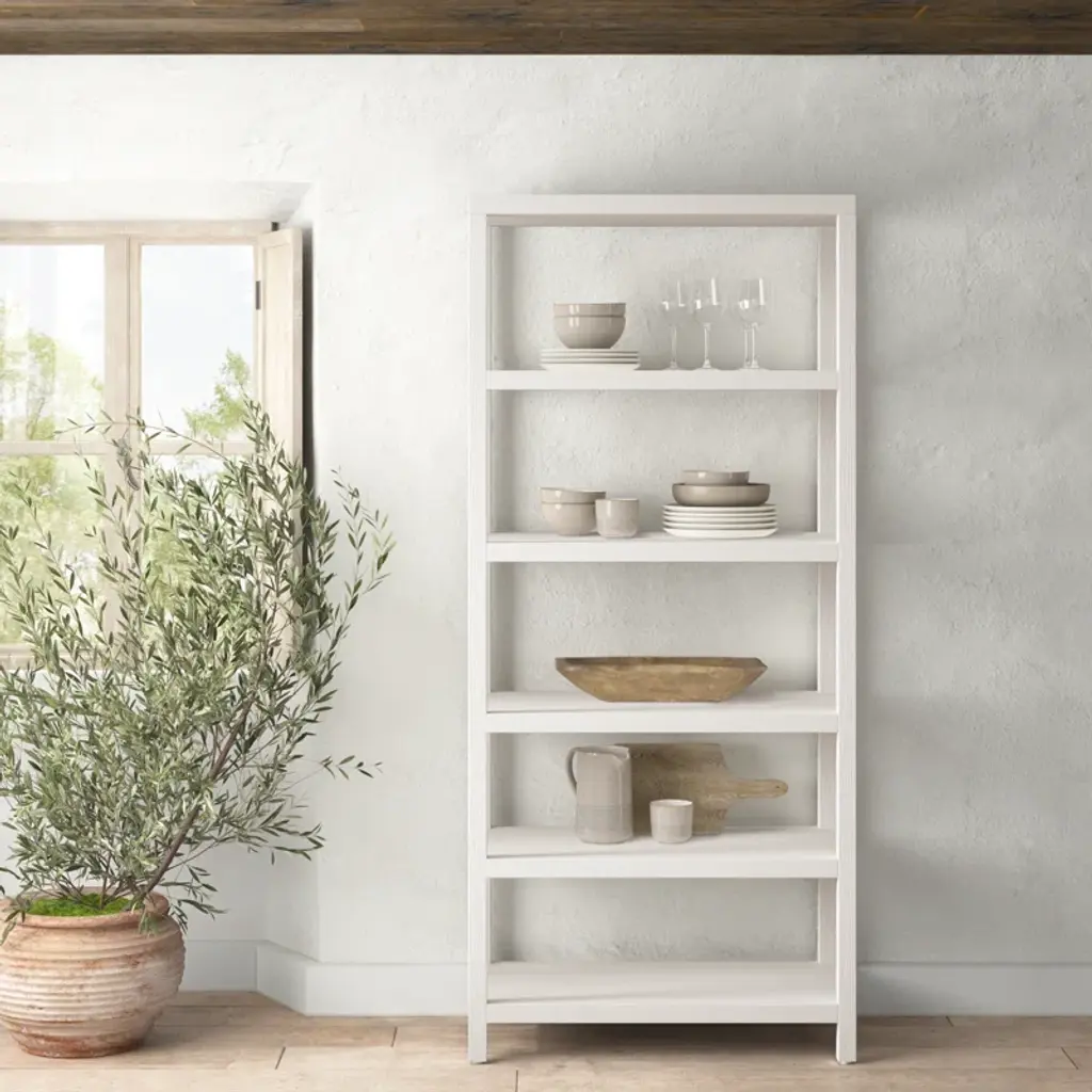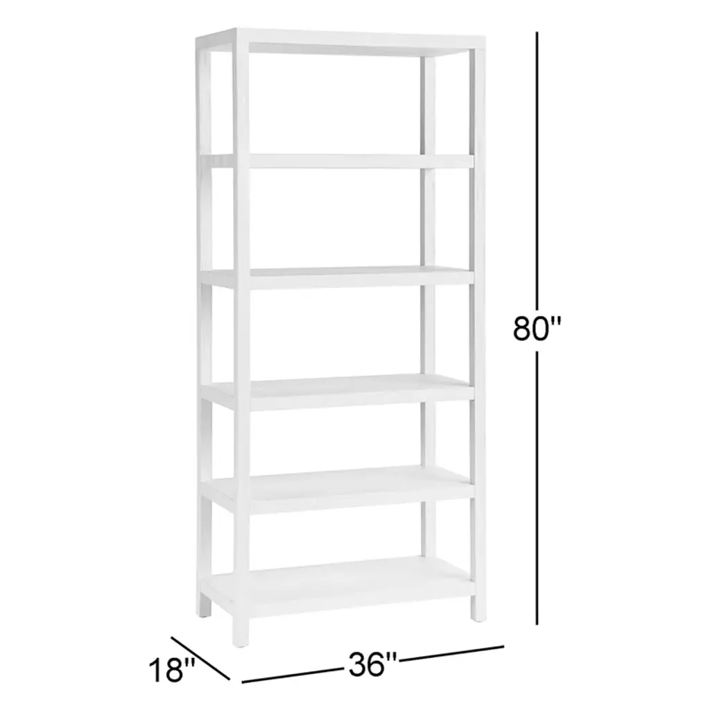 This etagere bookcase is a warm and inviting addition to any living space, combining a timeless design with a touch of modern flair. Made from solid oak wood, this vertical bookcase features six spacious shelves, each with a 25 lbs. weight capacity, perfect for displaying your cherished books, photos, and decorative accents. The kiln-dried wood construction ensures lasting quality, while the white finish adds a fresh and airy feel. With individual compartments and a finished back, this etagere bookcase is a versatile and elegant piece that complements any decor. Plus, a tip-over restraint device is included for added safety.