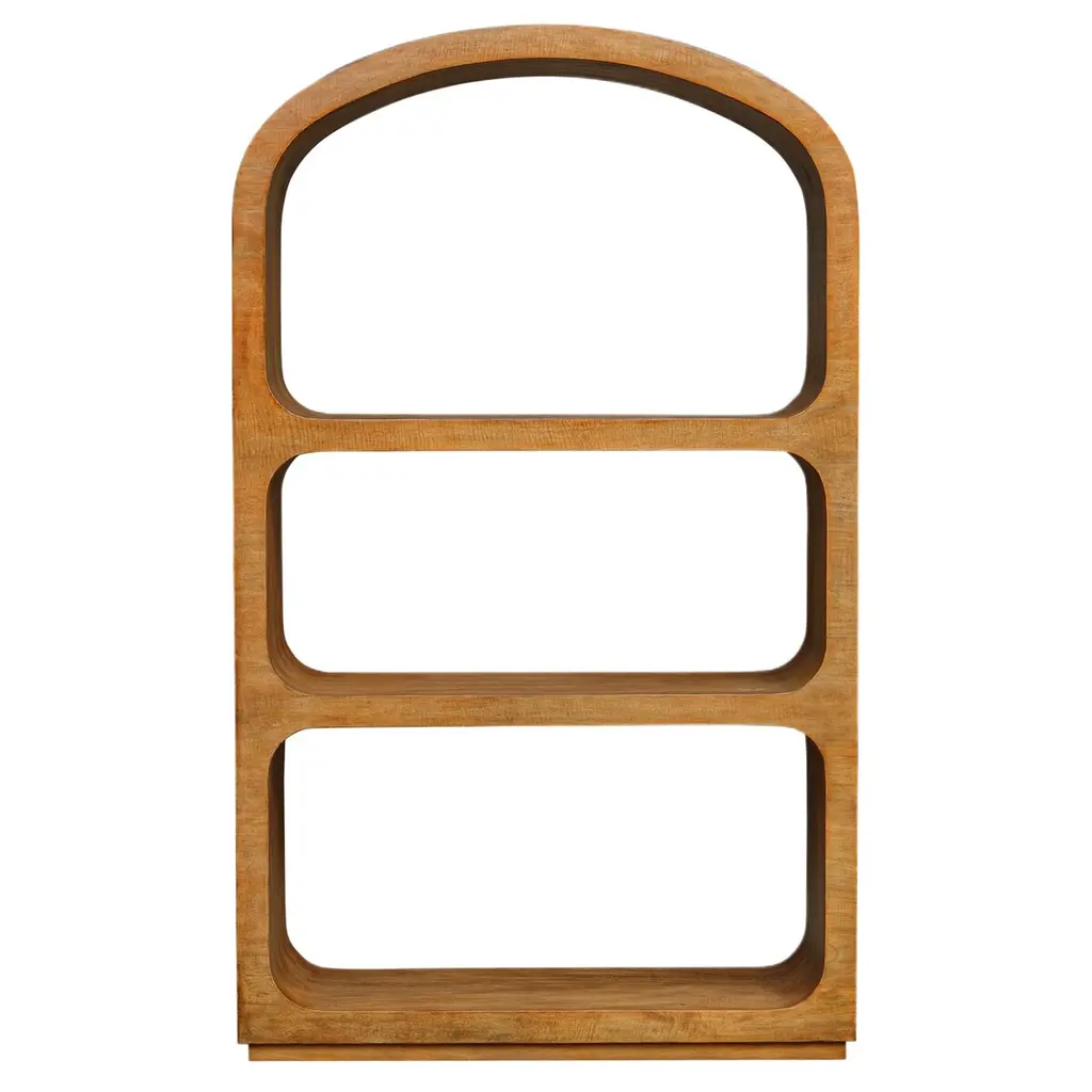 Discover the allure of the Rowan Etagere, where elegance meets simplicity in a dance of design. This exquisite piece features a sleek, arched silhouette that gracefully embraces smooth, seamless curves. Crafted with care, it showcases the natural beauty of wood grain, inviting you to admire its organic charm. The minimalist design of the Rowan Etagere is a harmonious blend of contemporary and organic styles, making it a timeless addition to any space. Let this etagere be the centerpiece of your room, where form and function unite in perfect harmony.