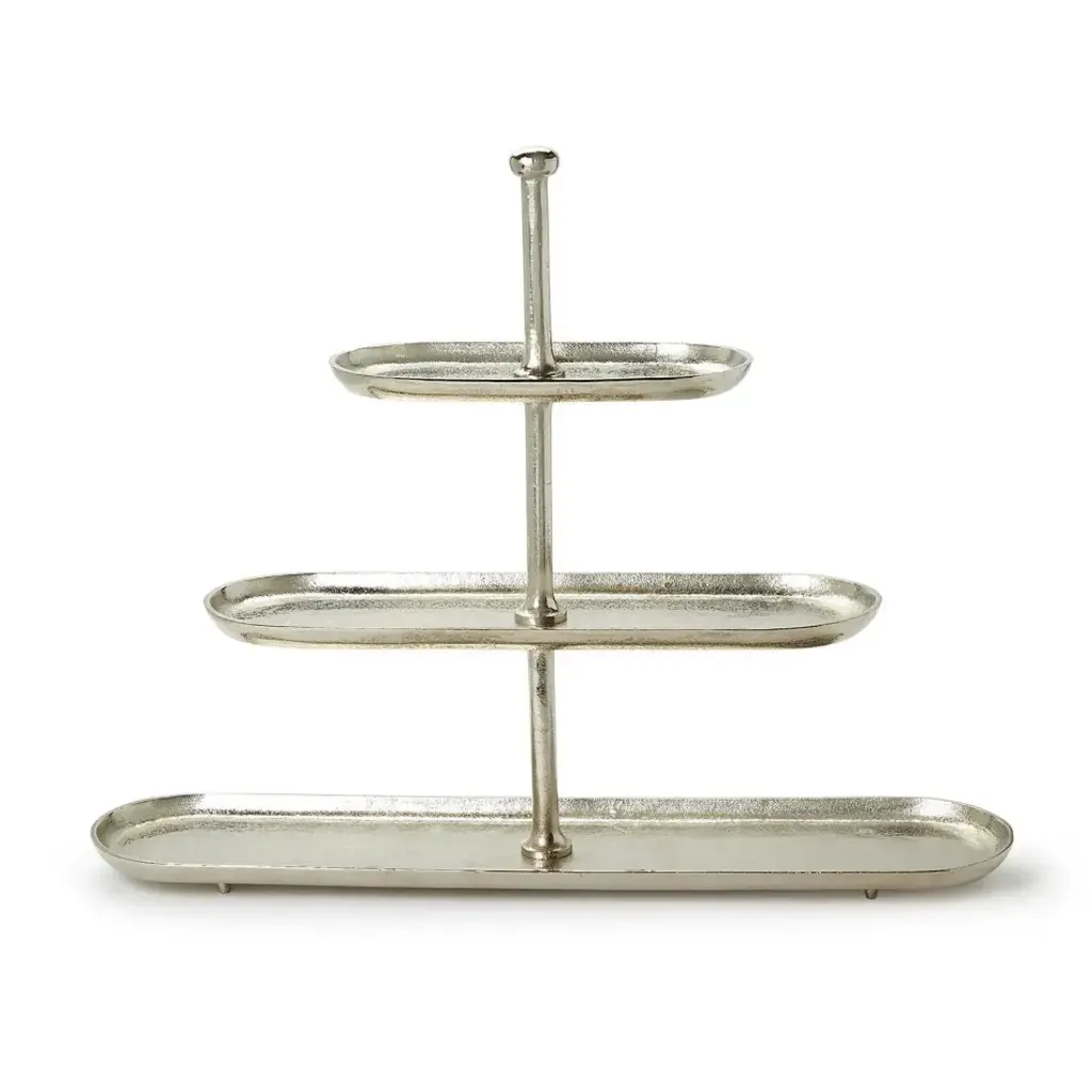 No matter what you are serving, this 3-tier etagere will add an elegant touch. Made from aluminum, it comes apart for easy storage and can be used as just one or two tiers as needed.