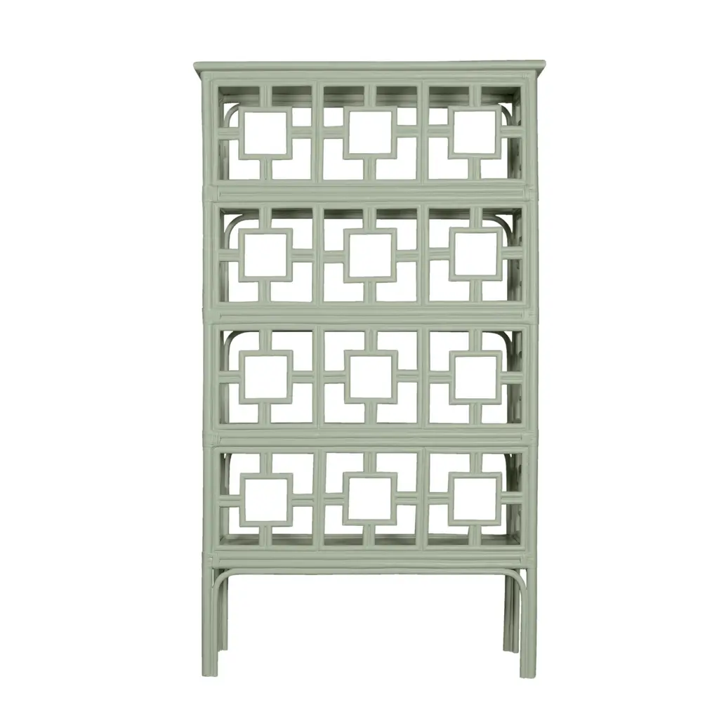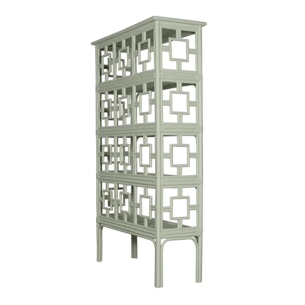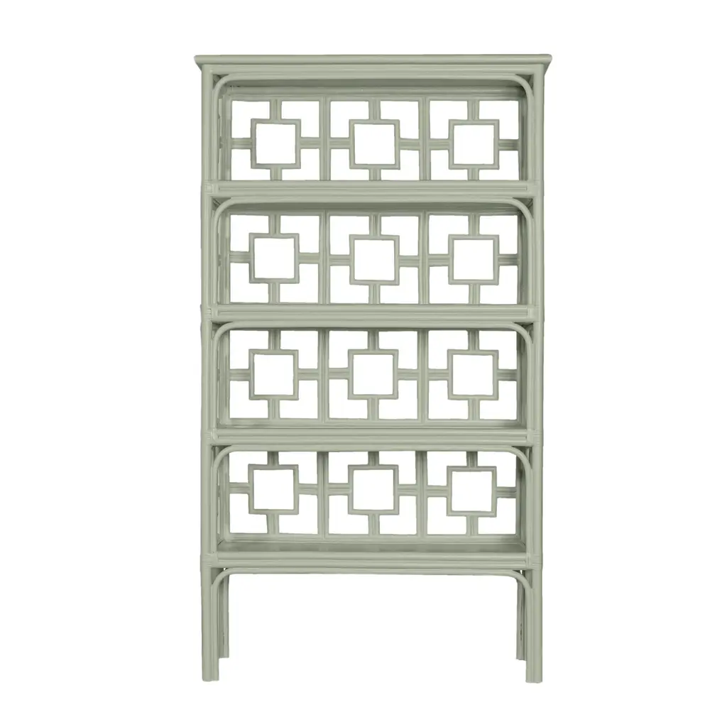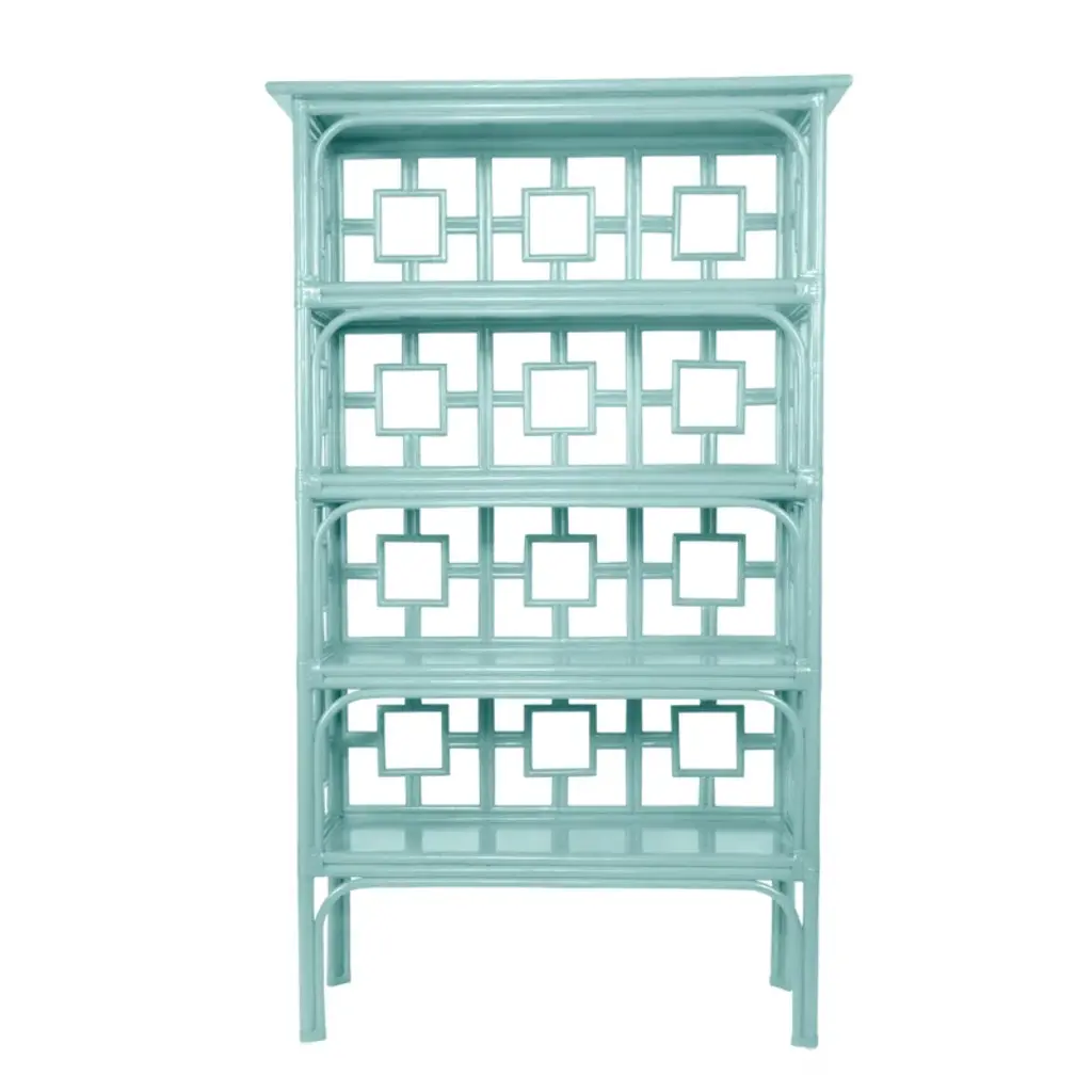 Enhance your space with the chic Sobe Etagere! Crafted with a modern rattan frame and accented with leather bindings, this piece effortlessly combines sustainability, style, and functionality. The four spacious shelves provide ample room for showcasing your favorite collectibles, making it a perfect blend of fashion and practicality for any room. The Sobe Etagere is where eco-friendly design meets sophisticated elegance.