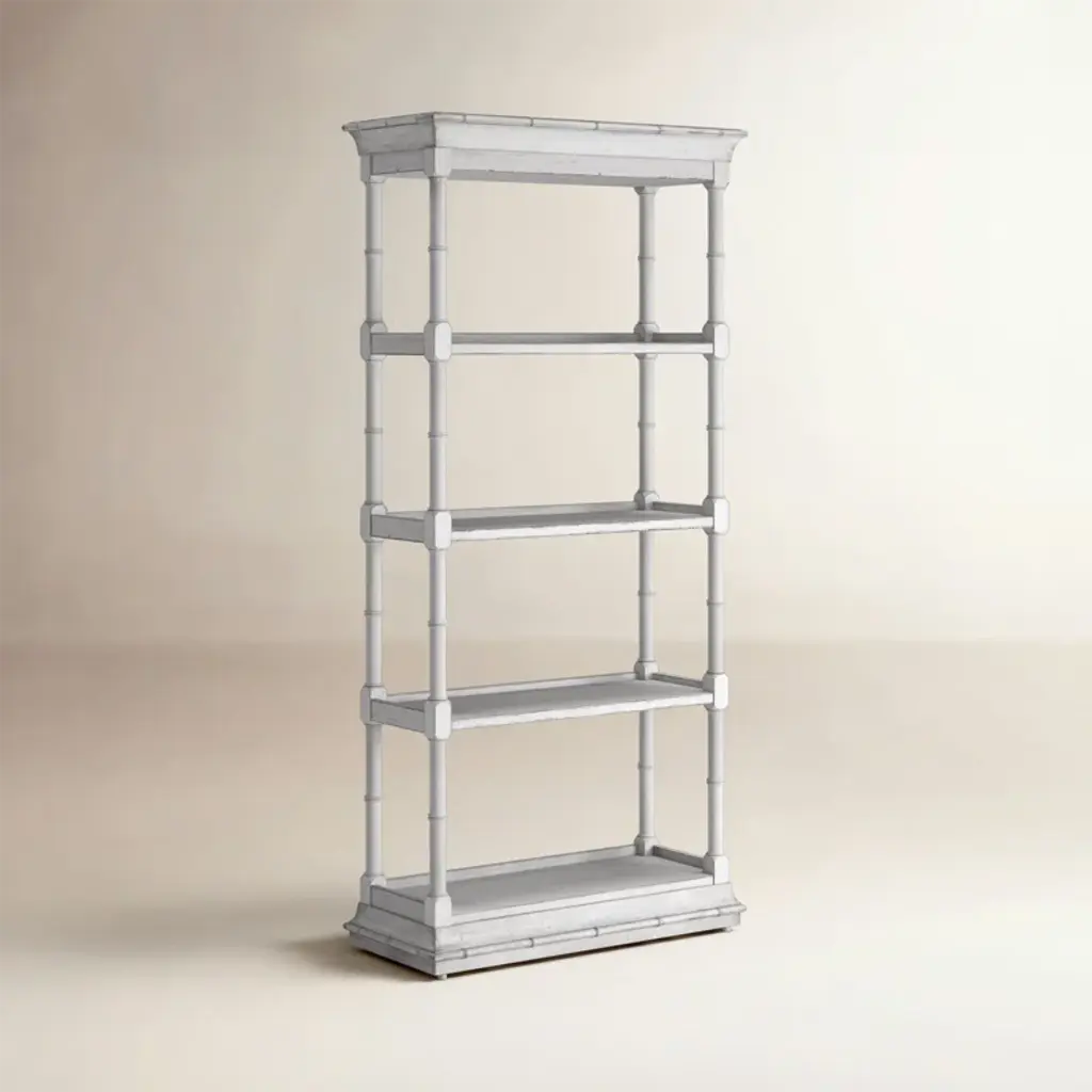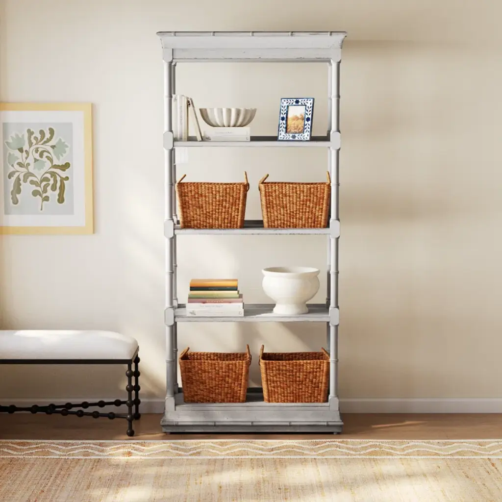 Capturing the vintage charm of the coastal South and the tropical craftsmanship of the West Indies, the Melanie has bamboo motif posts and crown molding on the top. Crafted of maple veneers and resin, it is finished in a white heron, a softer interpretation of the classic Southern limestone white with a slightly brighter sheen, delivering an heirloom-quality finish.