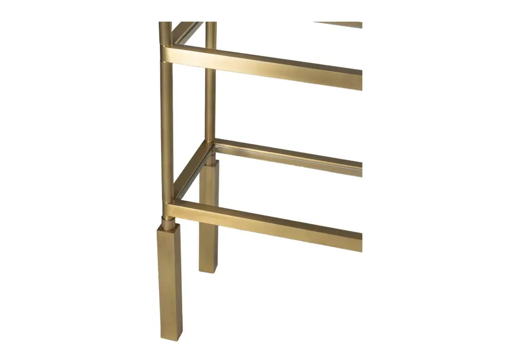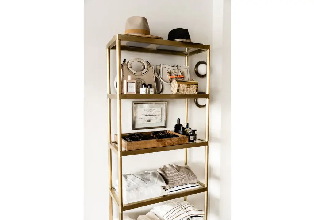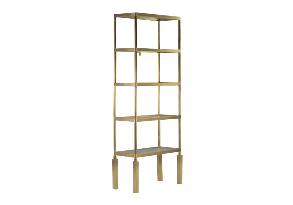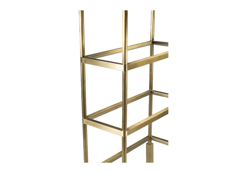 Based on our best-selling Beatrice Etagere, this taller, larger-scaled version offers more shelving and storage. Chic and sophisticated, it beautifully styles into living rooms, closets, bathrooms, bedrooms, and offices. Crafted from real brass with four clear glass shelves, it effortlessly adds simple elegance to every room.