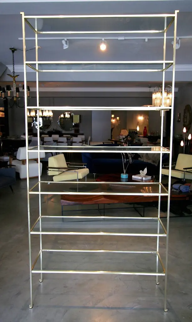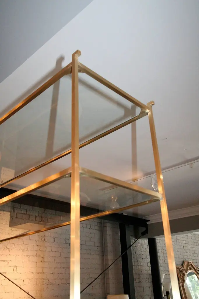 Tall Custom Brass Etagere With Glass Shelves By Adesso Imports