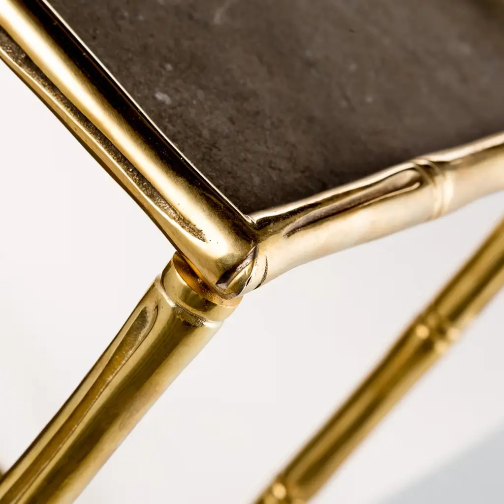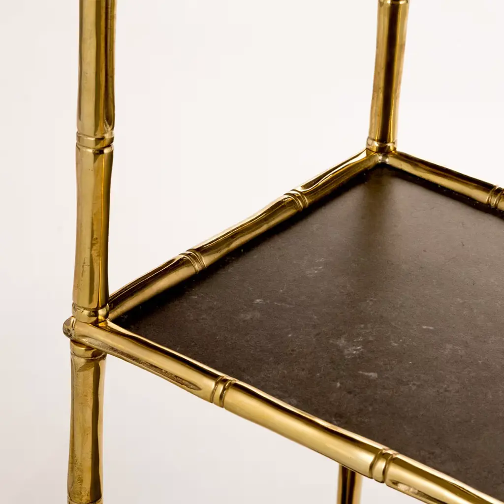The Bamboo étagère blends charm and functionality with its sturdy legs designed to resemble bamboo stalks. The three slate shelves provide elegant, durable surfaces for displaying decor, books, or plants. Its versatile design and ample shelf space make it a stylish and practical addition to any space.
