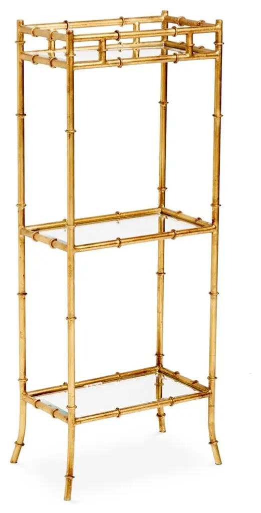 Three-Shelf Etagere In Natural Brass With Bamboo