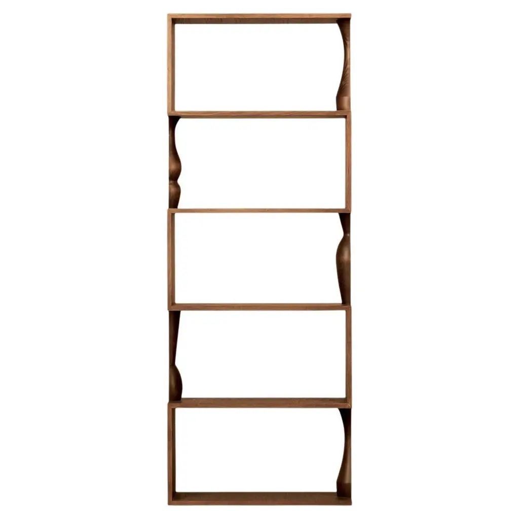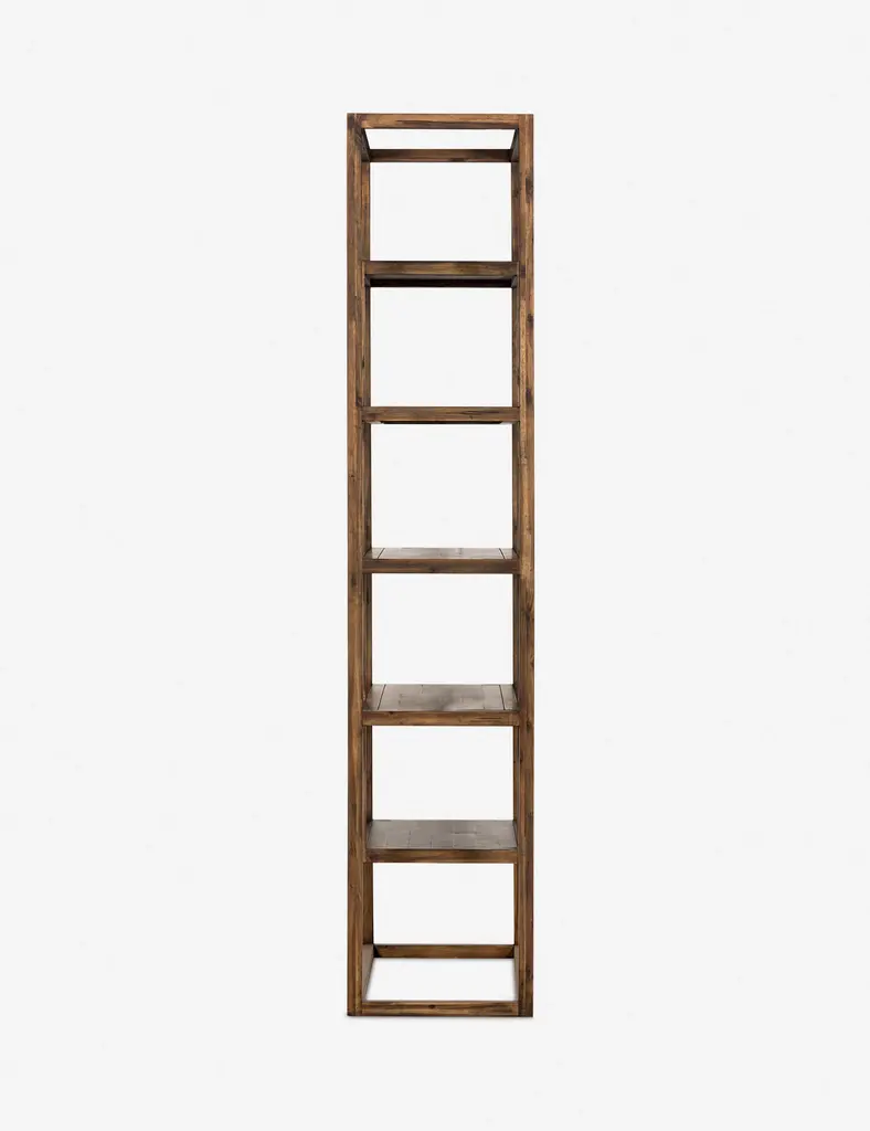 It's almost like a shelf within a shelf. Unique framing in a medium-brown wood makes this bookcase a must for mid-century inspired spaces. Stylist tip: put two side-by-side for a stunning statement wall.