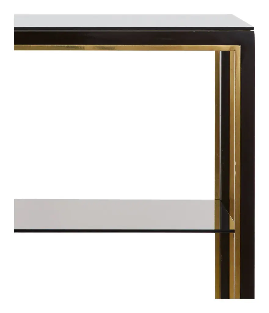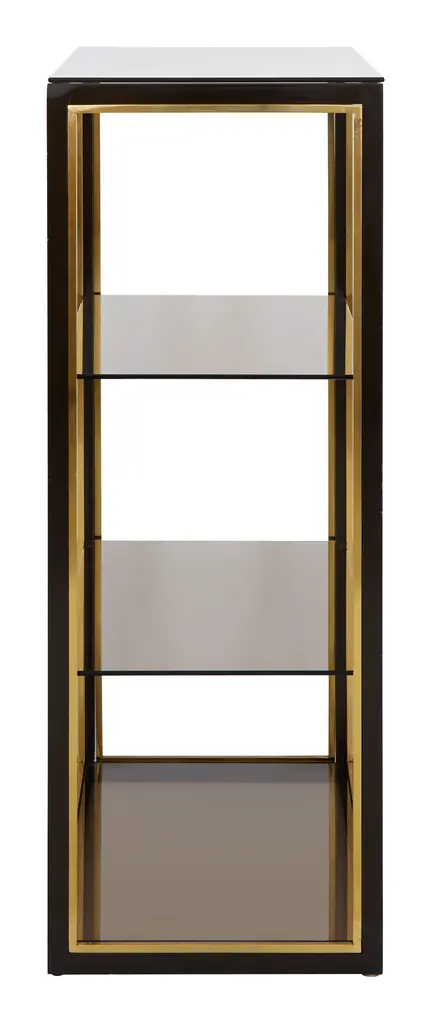•smoked glass shelves•black and brass frame•mid 20th century•belgium Dimensions: •31.5"w x 15.75"d x 42.5"h