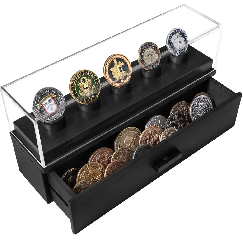 18" X 20" Solid Oak Military Flag Award And Medal Display Case, Usmc Emblem