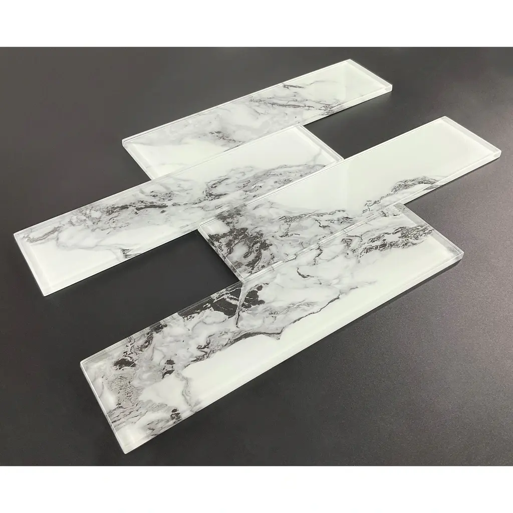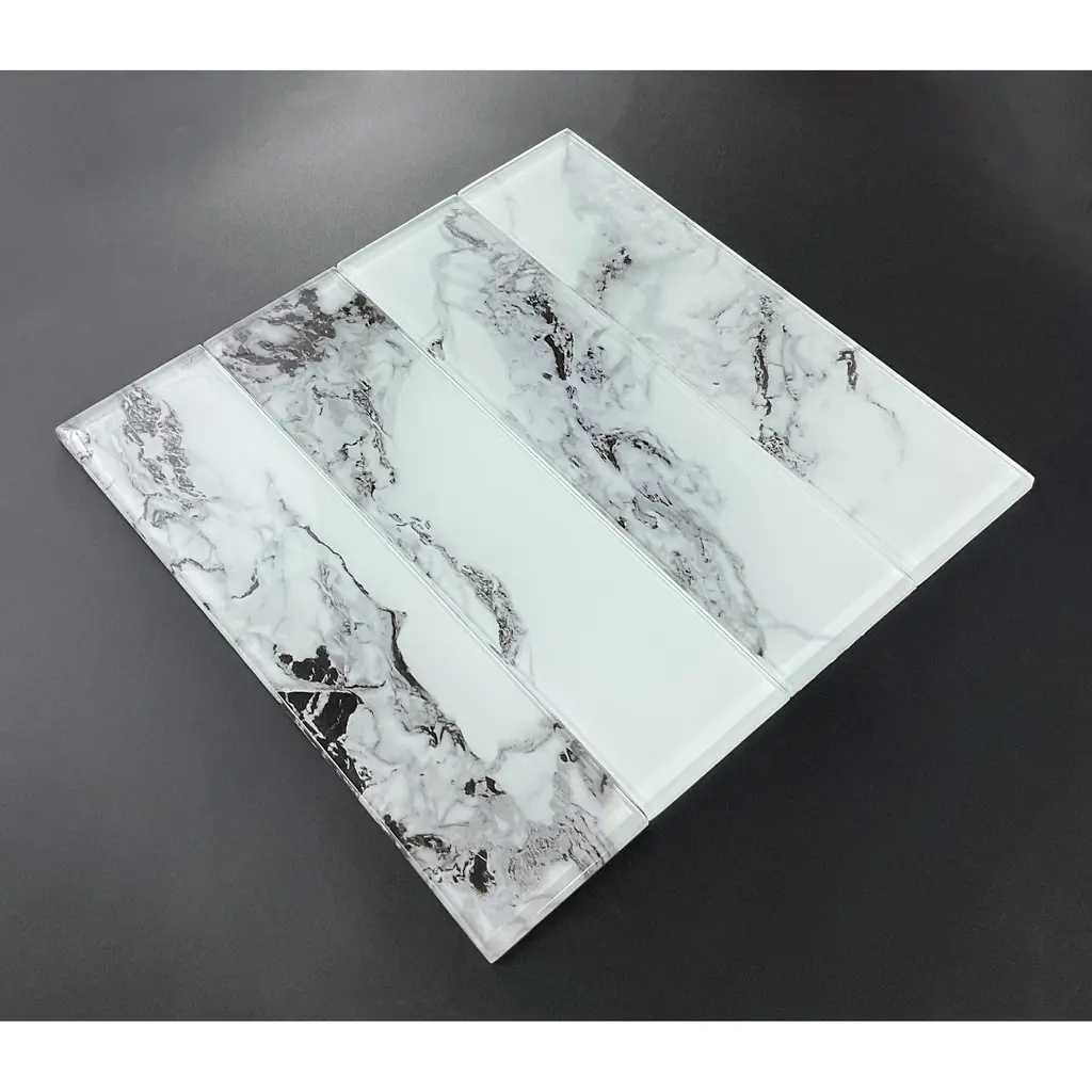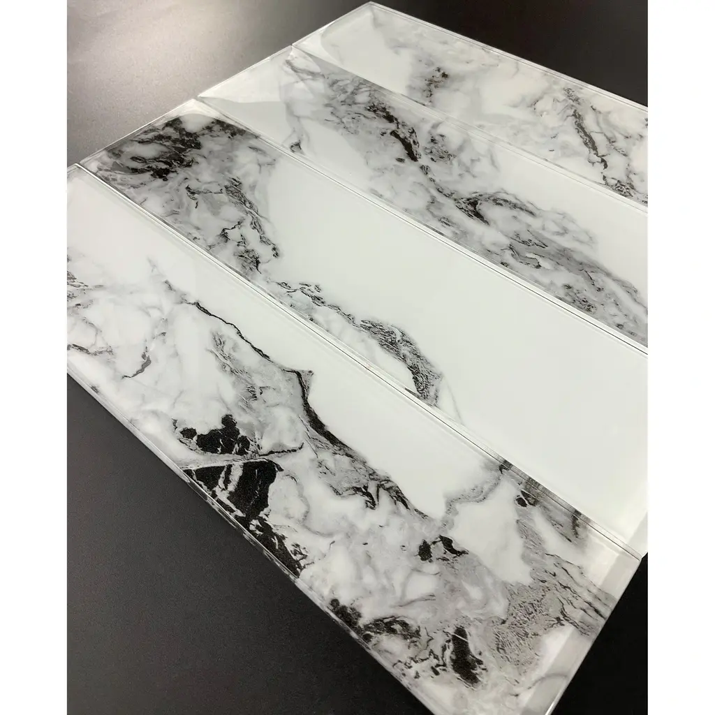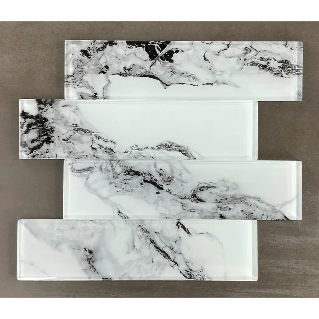 3 X 12 Glass Subway Wall Tiles - Case (10 Square Feet / 40 Pieces) - Case (10 Square Feet / 40 Pieces) - White & Black