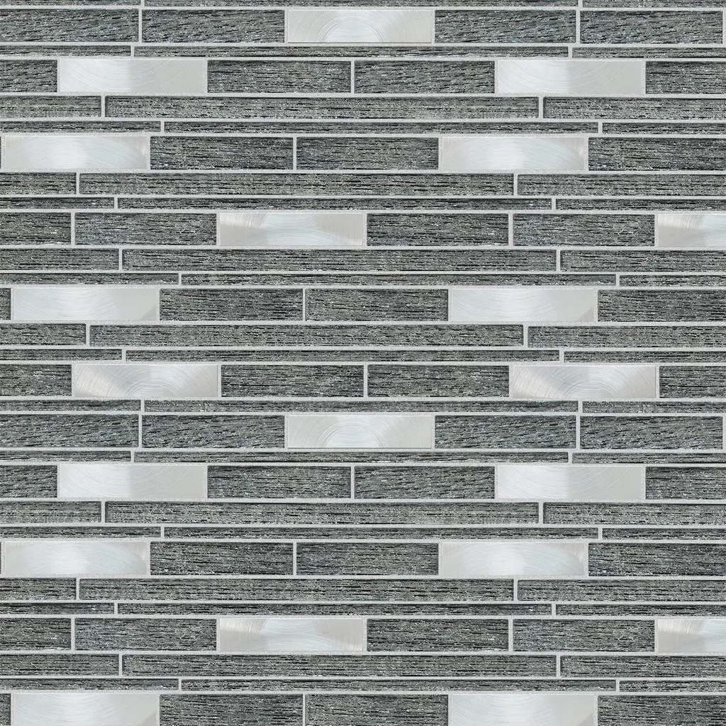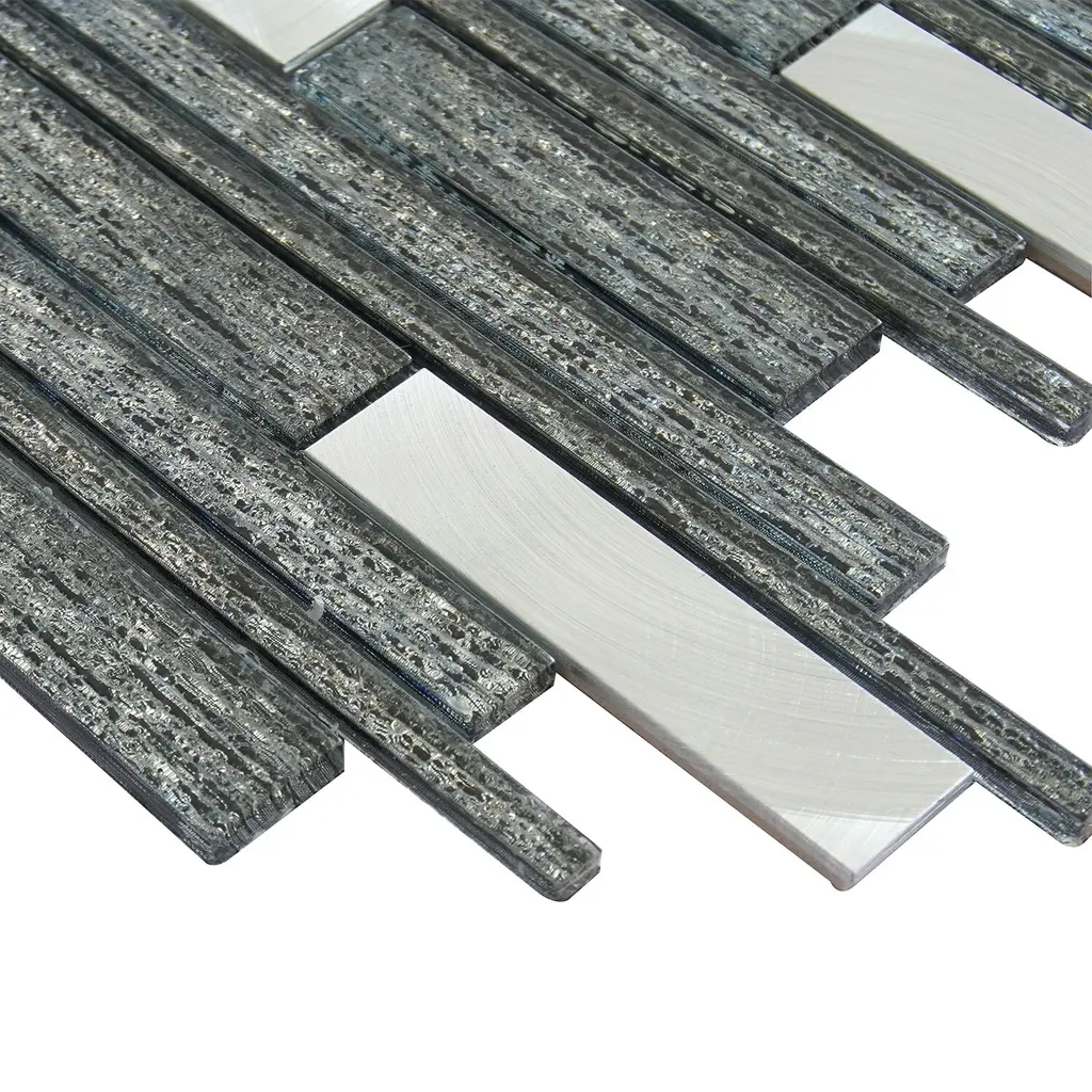 Altair Ardcarn Rectangular Laminated Glass Mosaic Mix Aluminum Wall Tile - Case - Black