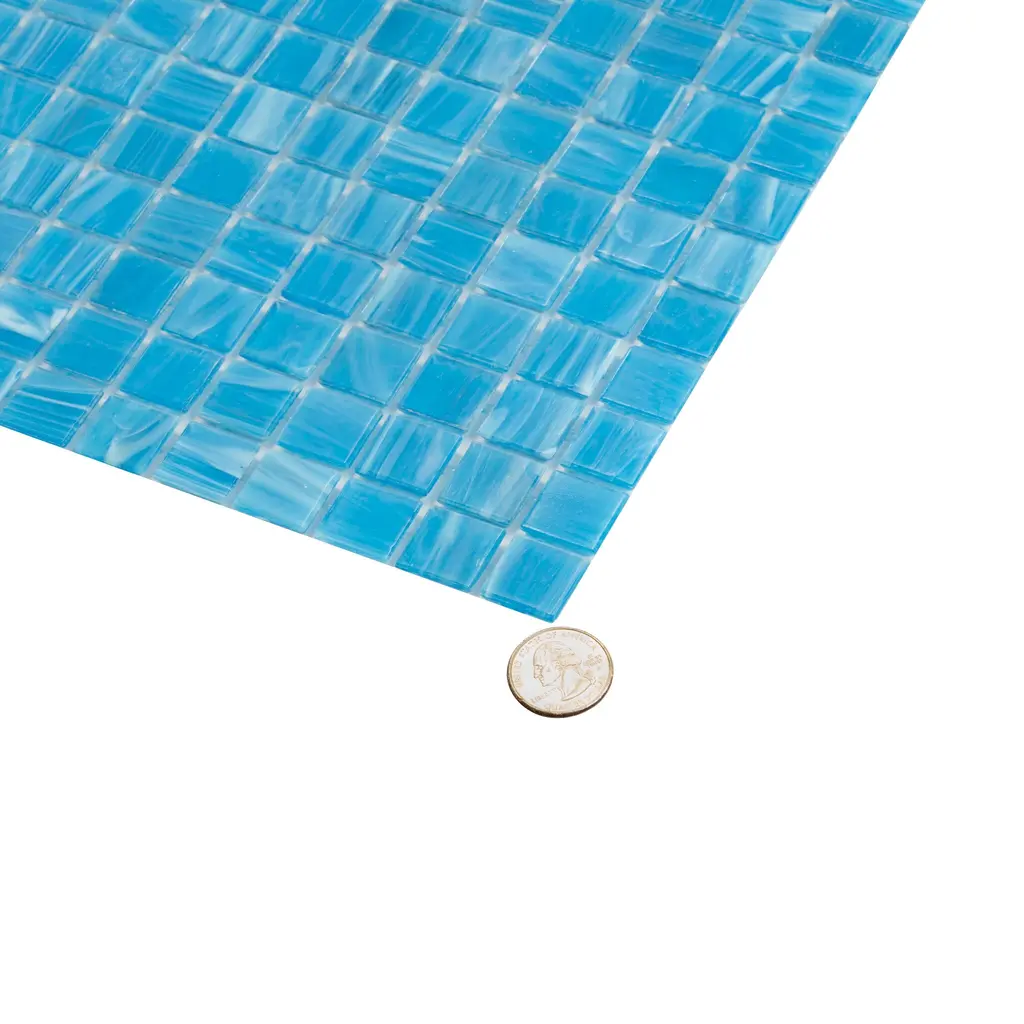 Escape to the Caribbean Sea with the glamorous blue palette of our glass mosaic tile. Its gem-like pattern and glossy surface makes a colorful splash in any interior or exterior design setting. Make your walls come to life through a crystal blue tile design paired with crisp white and metallic accents. This blue tile will instantly create a tropical paradise feeling in bathrooms where you want to relax after a long day. With its rich hues, the blue mosaic is a unique tile choice where you want to make a dramatic statement - be it a kitchen, bathroom, or vanity backsplash. A pool installation with these crisp blue hues will instantly transport you to a luxury resort! Far from an ordinary blue mosaic, this glass tile is the perfect compliment to submerged applications where you want to exude a multi tonal, reflective and dimensional quality. Disclaimers & Disclosures: Please be aware that if you order more than 151 pounds of tile or flooring, the order may need to be shipped by a freight carrier. If so, our Oversized Item Delivery and Return policy will apply.