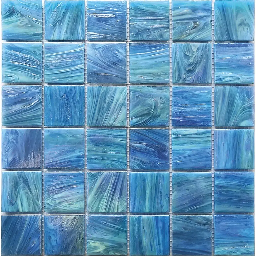 Do you love sea-inspired decor? This blue glass mosaic tile showcases a gorgeous blue palette in various aquatic shades. Inspired by the wavy ocean water, these mosaic tiles incorporate a range of mid-blue tones with a subtle brushstroke pattern. Assembled with mesh backing, this mosaic tile brings immense flexibility, allowing greater control in its application while making it easy and fast to install. Feature this serene blue color in your home for an iridescent wall surface to create a coastal style kitchen or bathroom walls as well as slip-resistant surfaces. Offered in a square grid pattern, these blue tiles allow for extra sgrip under the feet due to added grout lines. From indoor to outdoor projects, this jewel-like blue mosaic also gives you possibilities for underwater tiling projects for your swimming pools and fountains! Disclaimers & Disclosures: Please be aware that if you order more than 151 pounds of tile or flooring, the order may need to be shipped by a freight carrier. If so, our Oversized Item Delivery and Return policy will apply.