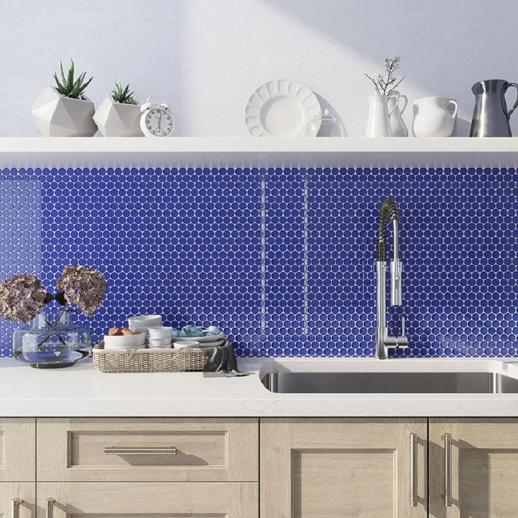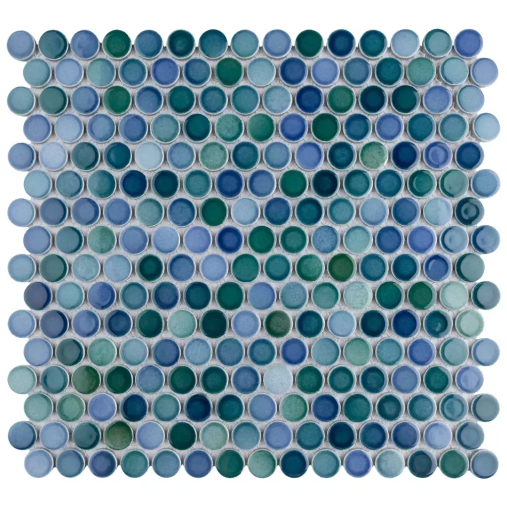 Feeling some love for retro style lately? A modern twist on an old classic, these penny round tiles will take you back in time while offering a chic contemporary look that looks very current. Using a glass penny tile on the wall or floor gives a highly reflective touch which bodes well with an otherwise matte interior. The result is an upscale glass tile decor that keeps modern appeal at the top of mind, creating a refreshing feel on any surface applied. One of the best features of this glass mosaic tile? It's durability! This non-porous material is low-maintenance and resistant to any stains that a busy bathroom or kitchen has to give. Thanks to the grout lines found in the busy pattern, traction is high which is perfect for wet and low-traffic areas. Evoke a sense of movement on a shower floor or accent wall while creating extra light and sheen with a glossy surface.