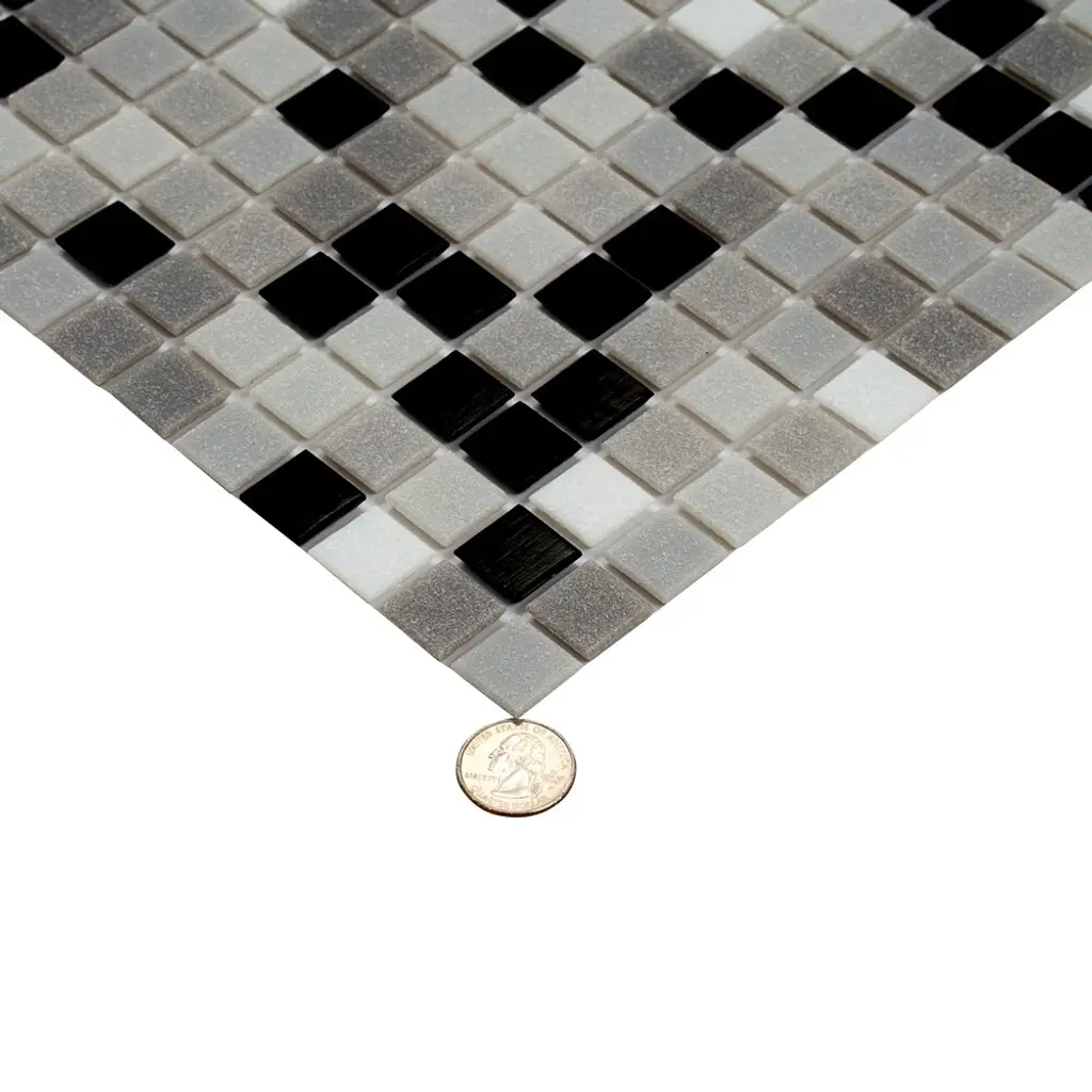 Stylize walls with a neutral glass tile made of white, gray and black for a timeless and elegant decor. This earthy mosaic tile is a twist on classic square mosaic tiles with a mixed palette that gives the neutral shades added dimension. The polished body gives it a nice shine, captivating the eyes with an extra modern appeal. A delightful mix of neutral tones make this tile suitable for a variety of color schemes and decor styles in your home or business. This square glass tile can blend well in a minimalist kitchen as a stain-resistant backsplash, or be your next accent wall tile for a modern bath design. With its polished appearance and impervious quality, glass tiles will slightly glisten with sunlight, and look exceptionally clean. Pair them with any other neutral color or bright tones - this neutral tile can easily be dressed up or down. Glossy body will offer you an easy-to-clean and maintain surface as it does not hold stains, water or chemicals! What is more, the checkered pattern provides added grout lines which results in slip-resistance - perfect for shower floors, steam rooms, pools and more! Disclaimers & Disclosures: Please be aware that if you order more than 151 pounds of tile or flooring, the order may need to be shipped by a freight carrier. If so, our Oversized Item Delivery and Return policy will apply.