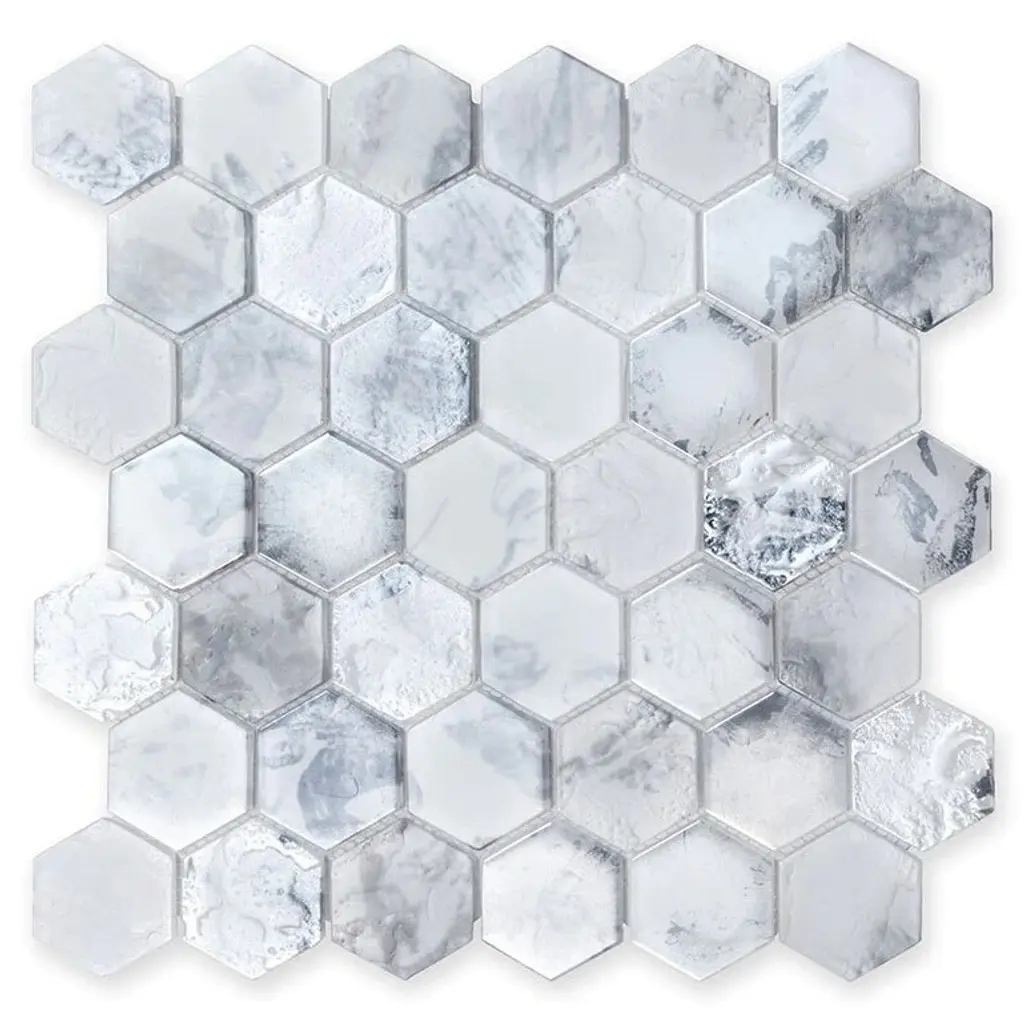 On the hunt for a beautiful wall or floor covering? Discover our gorgeous White Hex Glass Tile! Its pristine white coloring is easy on the eye and sets the tone for a contemporary setting. The matte finish lends a touch of refined sophistication to any project, be it a restaurant, hotel, spa, or home. The tiles are incredibly versatile and perfect for creating a statement wall, fireplace surround, or kitchen backsplash design. Made from highly durable glass, these white tiles will withstand pretty much anything life throws at them. Watertight, difficult to stain or discolor, and a breeze to keep in an immaculate state. Perfect then for shower walls, bathroom floors, and bathtub surrounds. The increased grout lines and matte texture provide extra grip underfoot. These amazing qualities work just as well outdoors—ensuring your new patio or swimming pool looks its best for years to come. The tiles are mesh mounted for easy and quick installation.