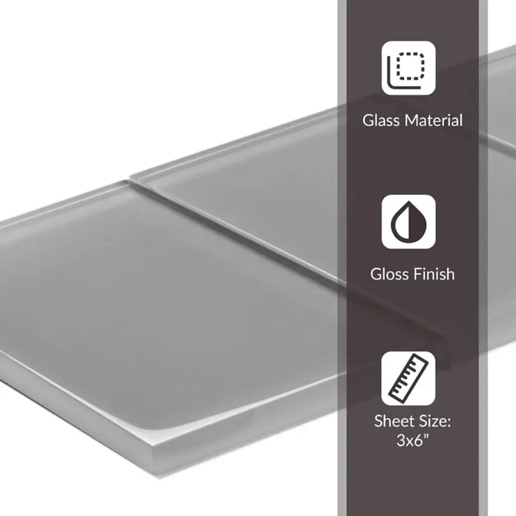 Apollo Tile 3" X 6" Colorway Glossy Gray Glass Tile (5 Sq Ft/case) - 40 Pack - Grey