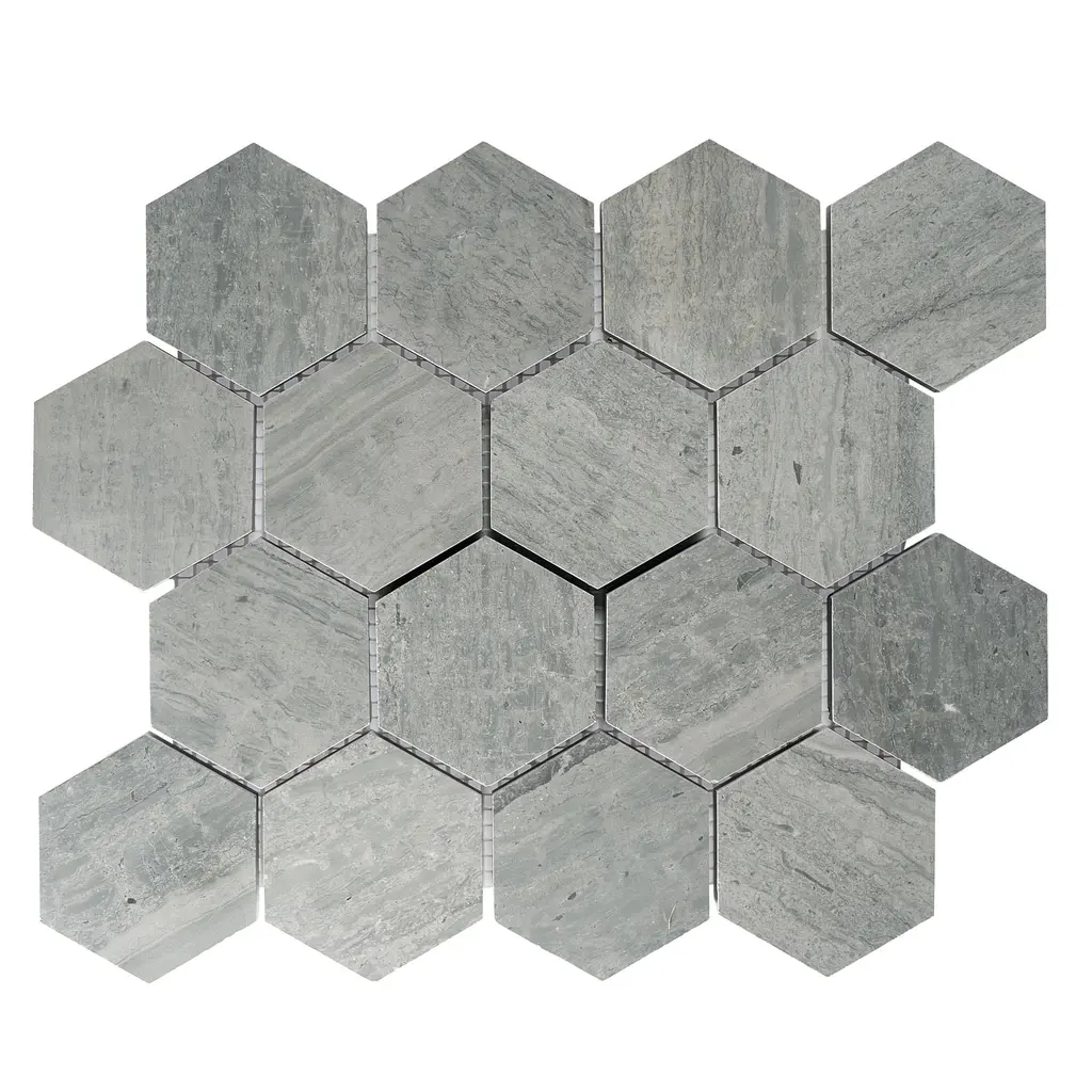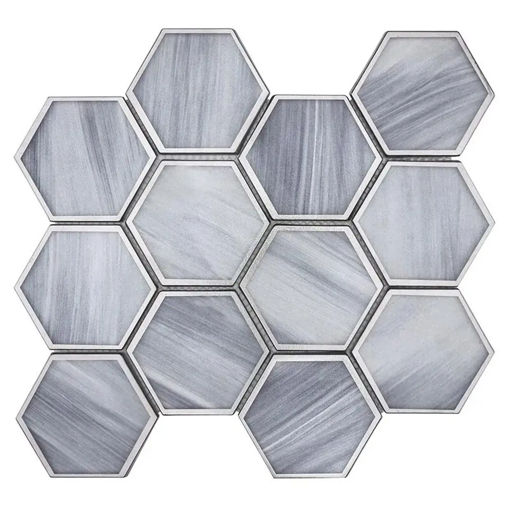 Add a breath of fresh air to your home with the serene beauty of the Frosted Blue Hexagon Glass Mosaic Tile. This soft, misty blue tone feels like a gentle ocean breeze, perfect for creating a calming, coastal vibe. The matte finish keeps it elegant, while the hexagonal shape brings a modern, geometric flair. Available in a variety of elegant color tones, including deep "Charcoal Gray," soft "Cloud Gray," misty "Pewter Gray," and delicate "Frosted Blue," these tiles ensure you'll find the perfect shade to complement your style. Each variation carries the same matte finish and hexagon pattern that balances classic appeal with modern flair. Ideal for kitchens, shower walls, and even statement features, this 10.5" x 9" tile sheet with 3" x 3" chips brings subtle color and texture to your design. Whether paired with crisp whites or warm wood tones, Frosted Blue effortlessly enhances the tranquility of your space. It's easy to install, simple to clean, and guaranteed to have your guests asking, "Where did you find this?"