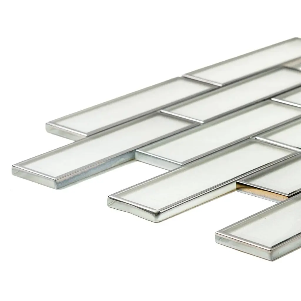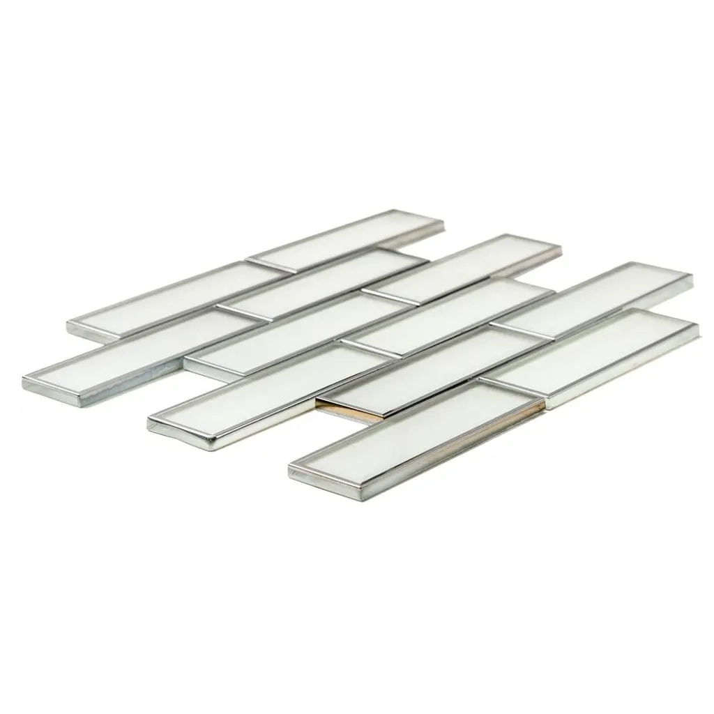Not for the faint of heart, our Athena Glass Brick Joint Mosaic makes a bold statement with its metallic trim and sleek modern white color. This glass mosaic will be a seamless backsplash for contemporary kitchens and bathroom walls. Achieve a traditional look with Athena's classic white color while maintaining an upscale feel with its reflective outline. The mesh-backed glass mosaic features a brick joint design with straight edges and a glossy finish, adding a touch of elegance to any space. The Tile Life's Athena Glass Brick Joint Mosaic is perfectly installed as a backsplash or statement wall in any kitchen, bathroom, or living room. FEATURES:DIMENSIONS: