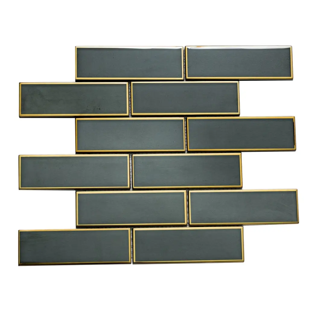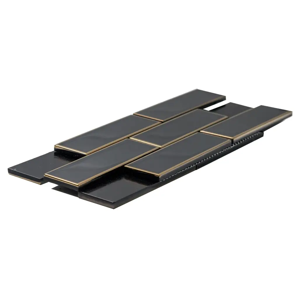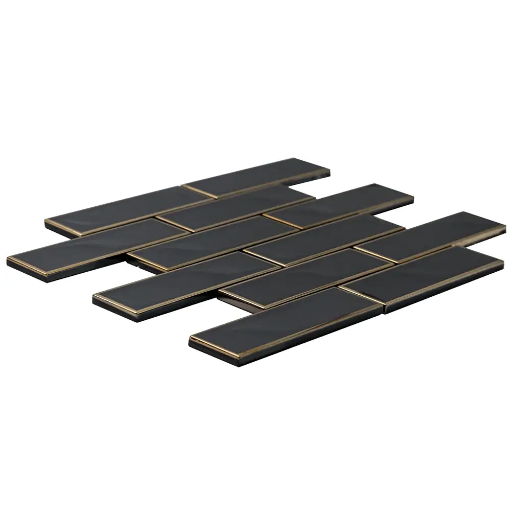 Athena 2" X 6" Black/ Gold Glass Mosaic Backsplash Wall Tile - Case Of 11 (11 Sq. Ft.)
