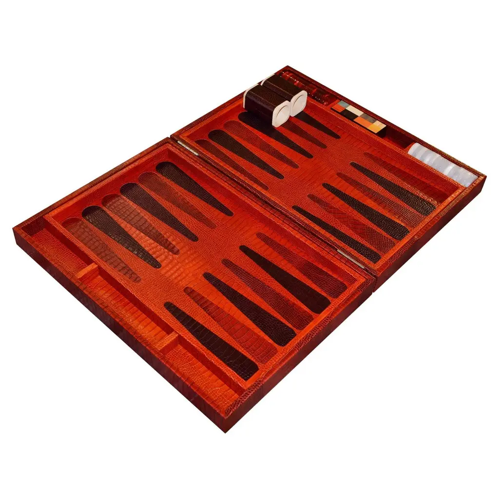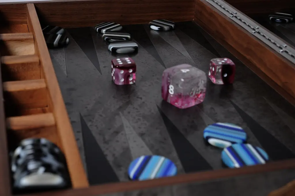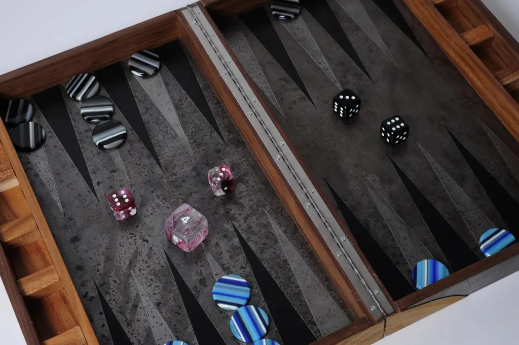 Backgammon Lineal Wood Case With Glass Chips And Dice