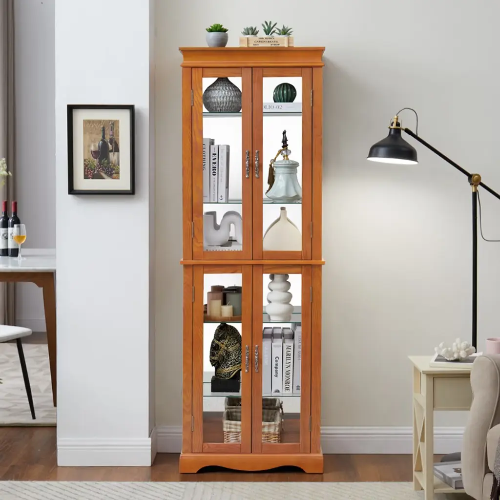 Fontoi Curio Display Cabinet, Display Cabinet, Six-tier Glass Showcase With Adjustable Shelves For Collection, Oak, 11.81"*70.08"*23.82"