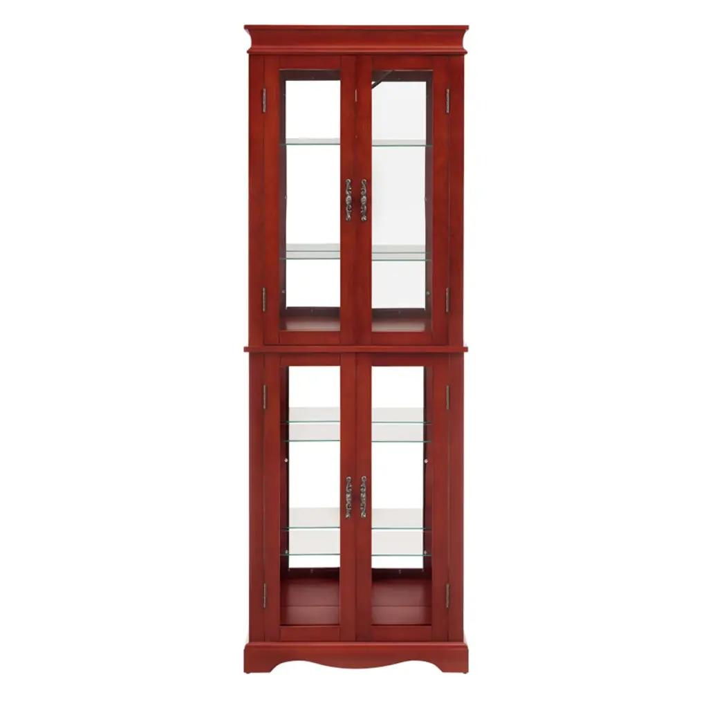 This display cabinet has a six - tier multilayer design for abundant collectible display, movable partitions with adjustable shelves for personalized presentation, versatile placement in various spaces, a glass - and - wood combination for aesthetic appeal, and enables easy installation to quickly showcase and store items.