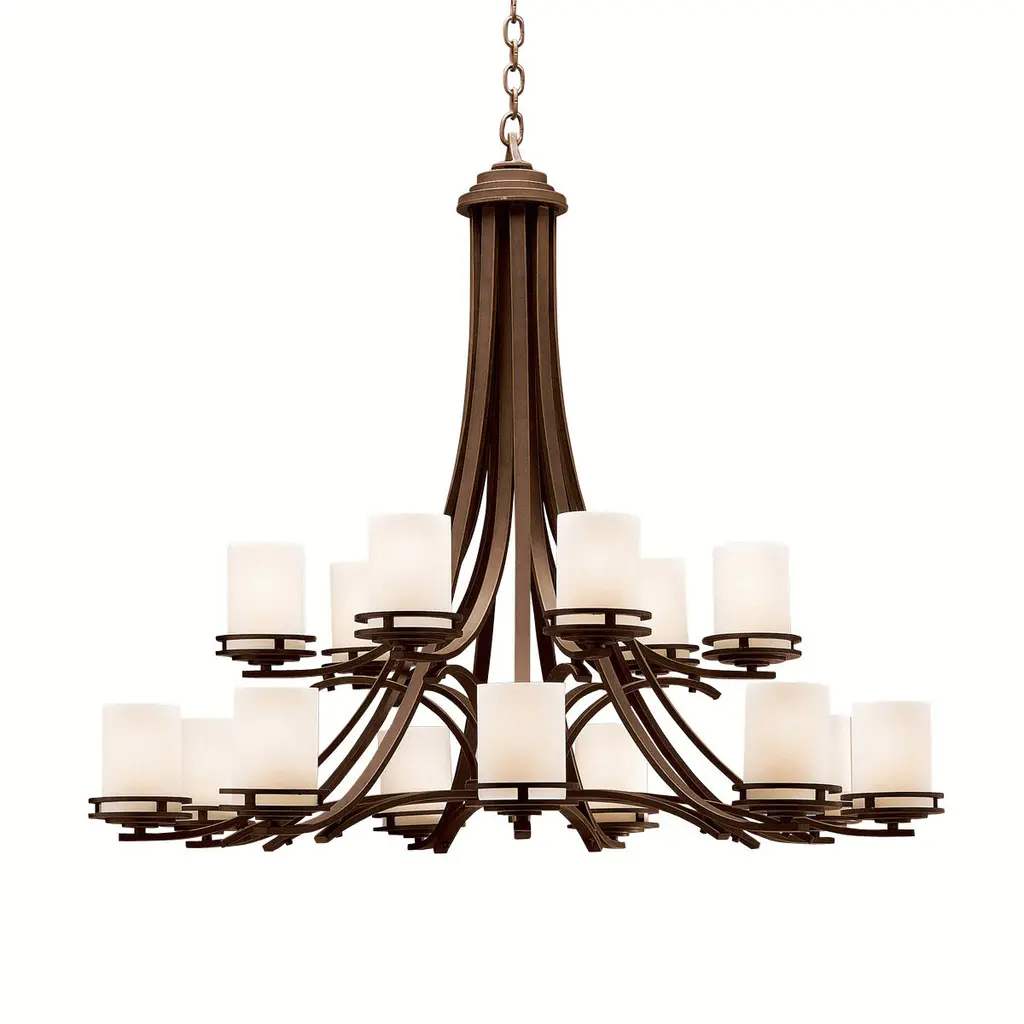 The Hendrik(TM) 36in. 15 light chandelier features a classic look with its Satin Nickel finish and satin etched cased opal glass. Inspired by Hendrik Berlage, the Hendrik Chandelier works in several aesthetic environments, including traditional and modern.