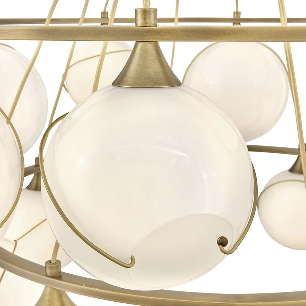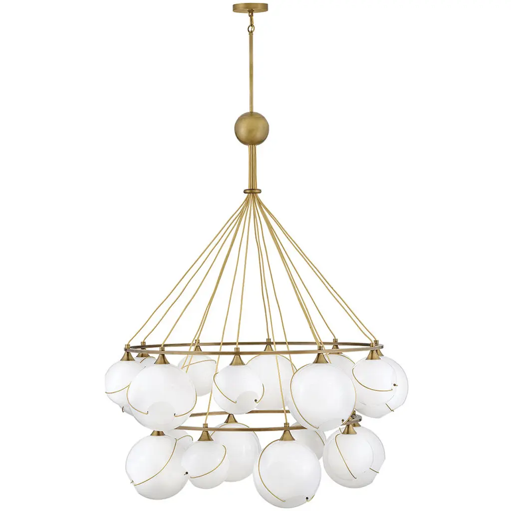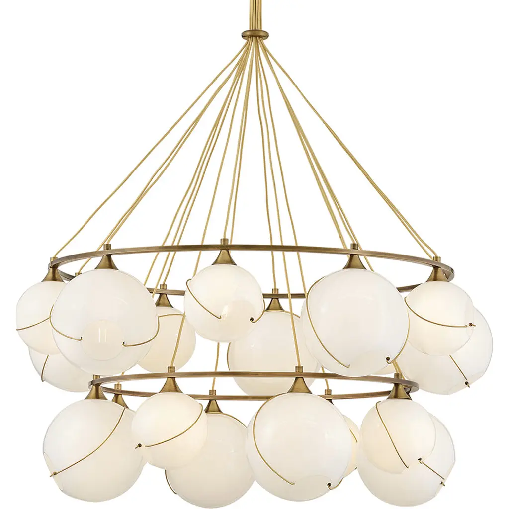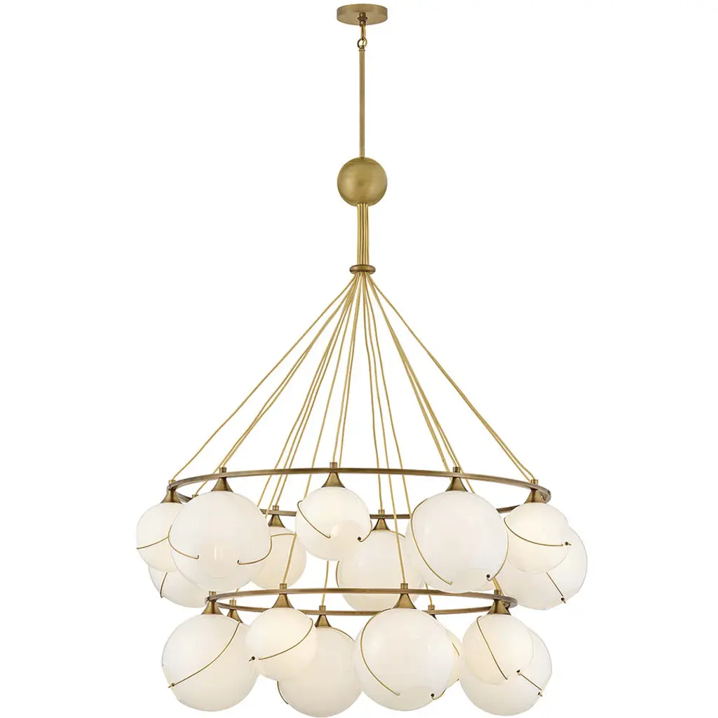 Lisa Mcdennon Skye 18 Light 53.25 Inch Heritage Brass Chandelier Ceiling Light In Heritage Brass / Cased Opal, Multi Tier