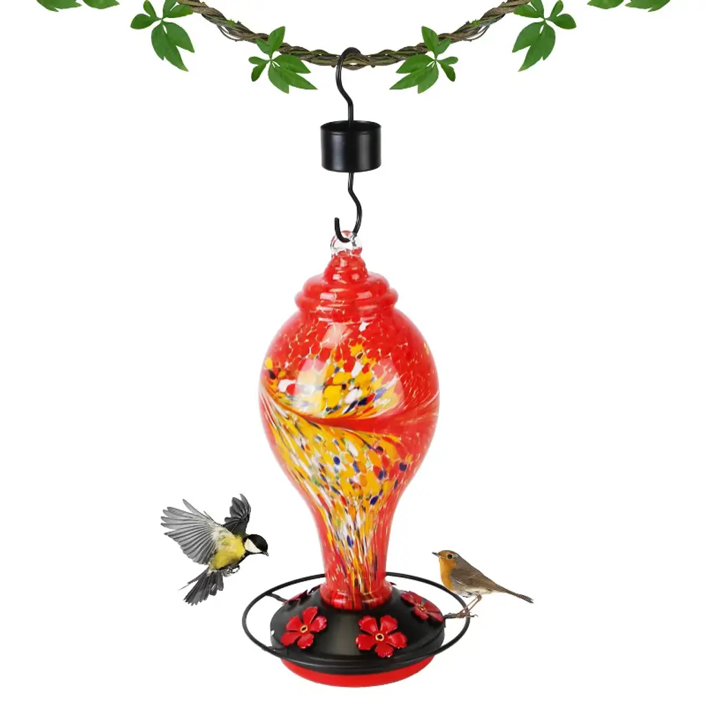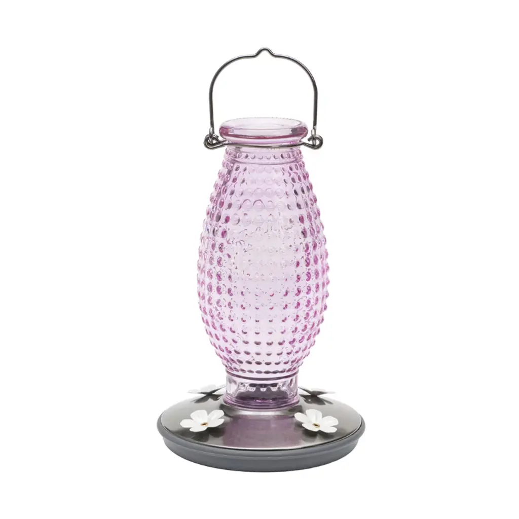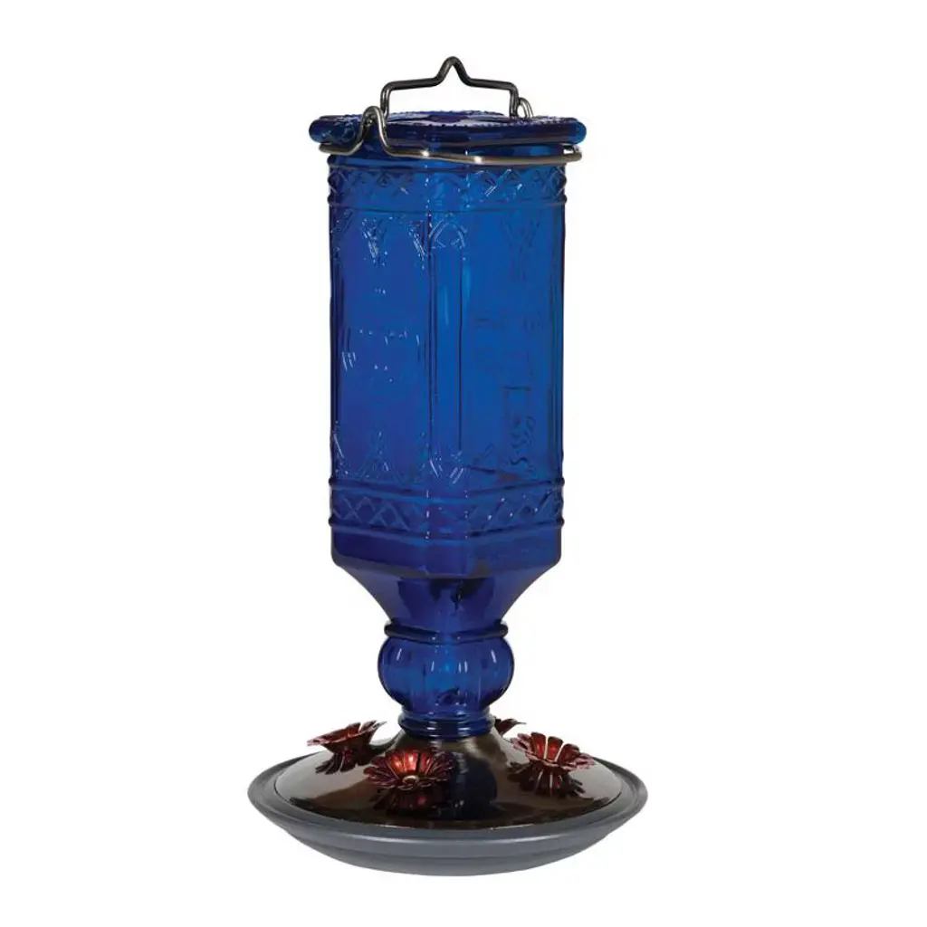 With the Perky-Pet green antique glass bottle hummingbird feeder, you'll get a functional feeder that hummingbirds can't resist, all in one show-stopping package. The attractive pale green antique-style bottle and the brushed metal base will make a stunning backyard accent piece that you're sure to love. With 4 red flower-shaped feeding ports and a 10 oz nectar capacity, your hummingbirds will love it, too!