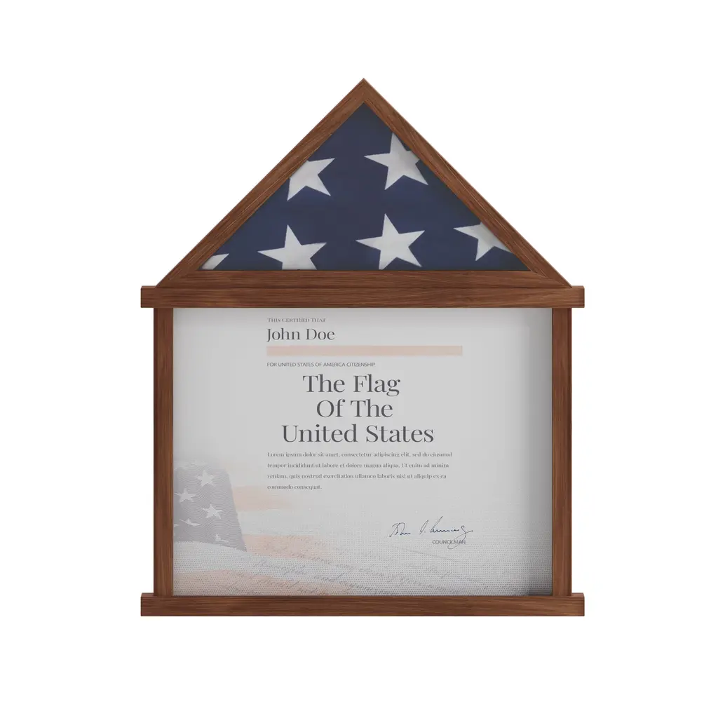 Quincy Memorial Flag Display Case With Certificate Holder, Pine Wood Shadow Box For Flag, Certificate, And Medals