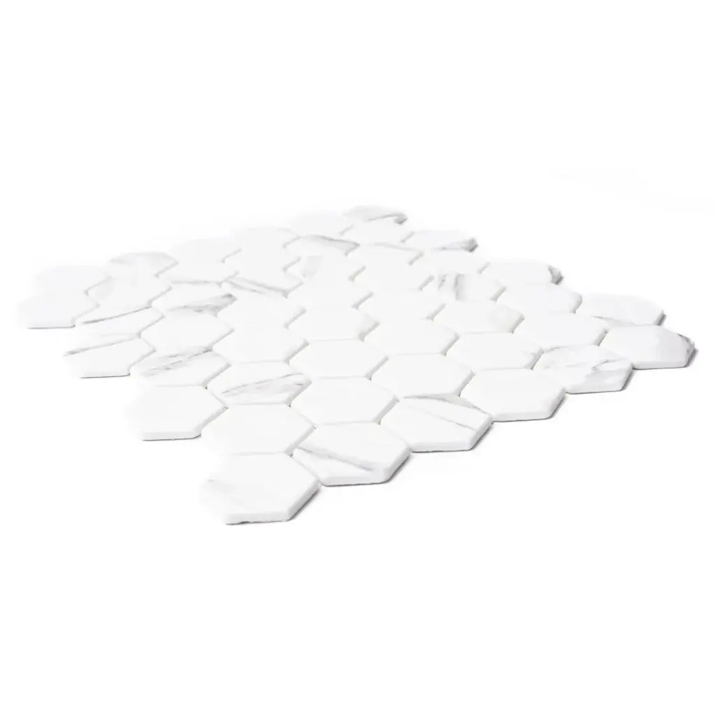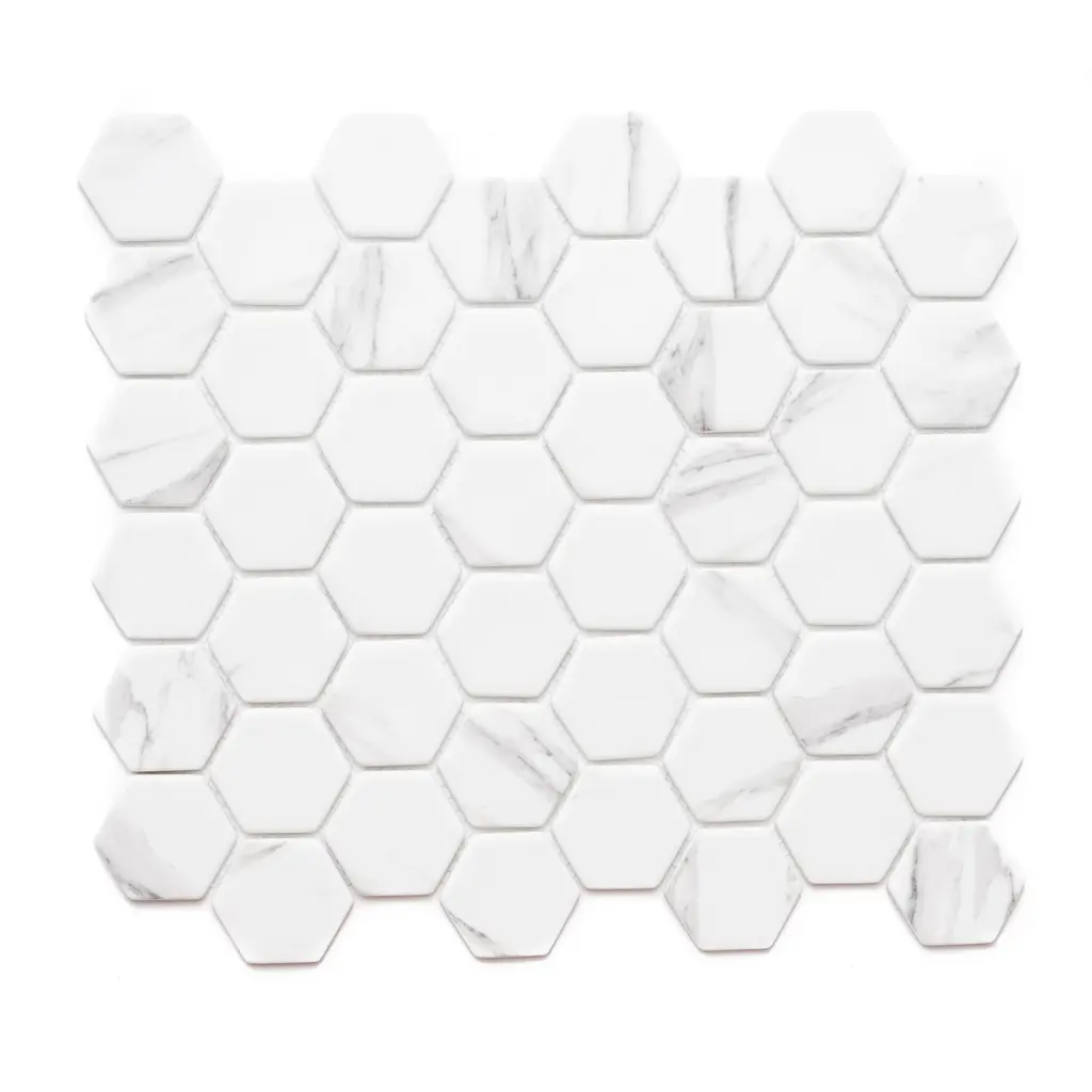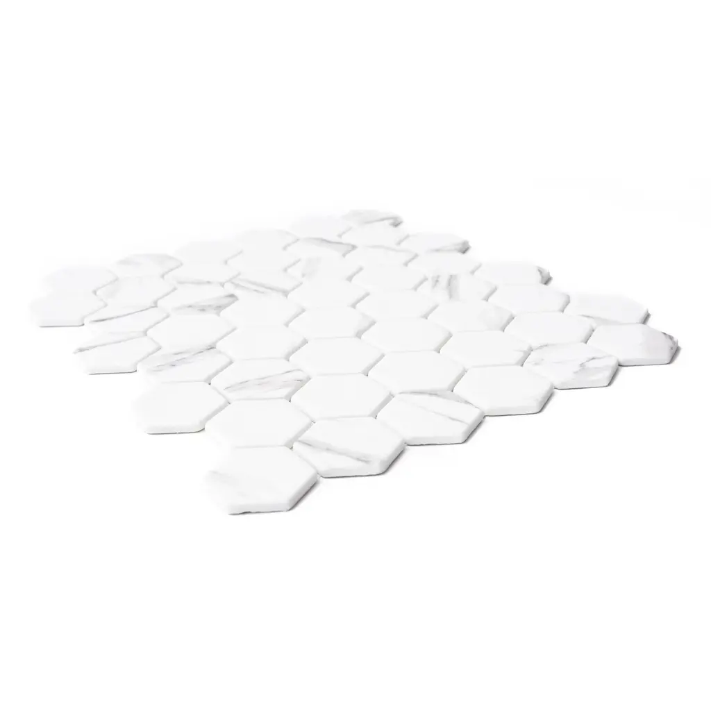 Recycled 1.88" X 1.88" Carrara Hexagon Glass Mosaic Backsplash Wall Tile - Case Of 14 (15.68 Sq. Ft.)
