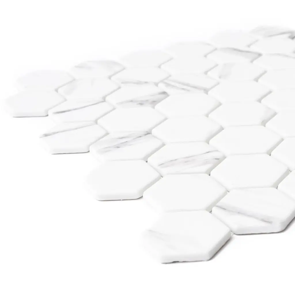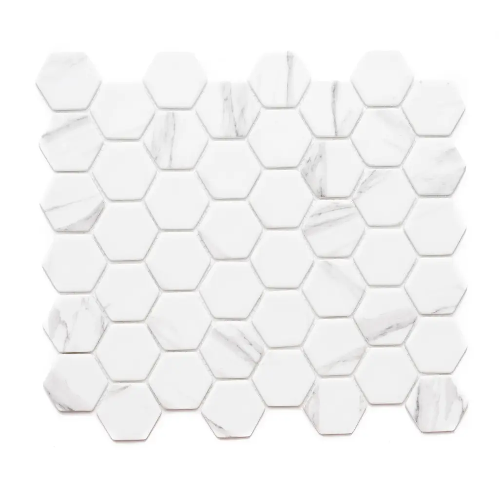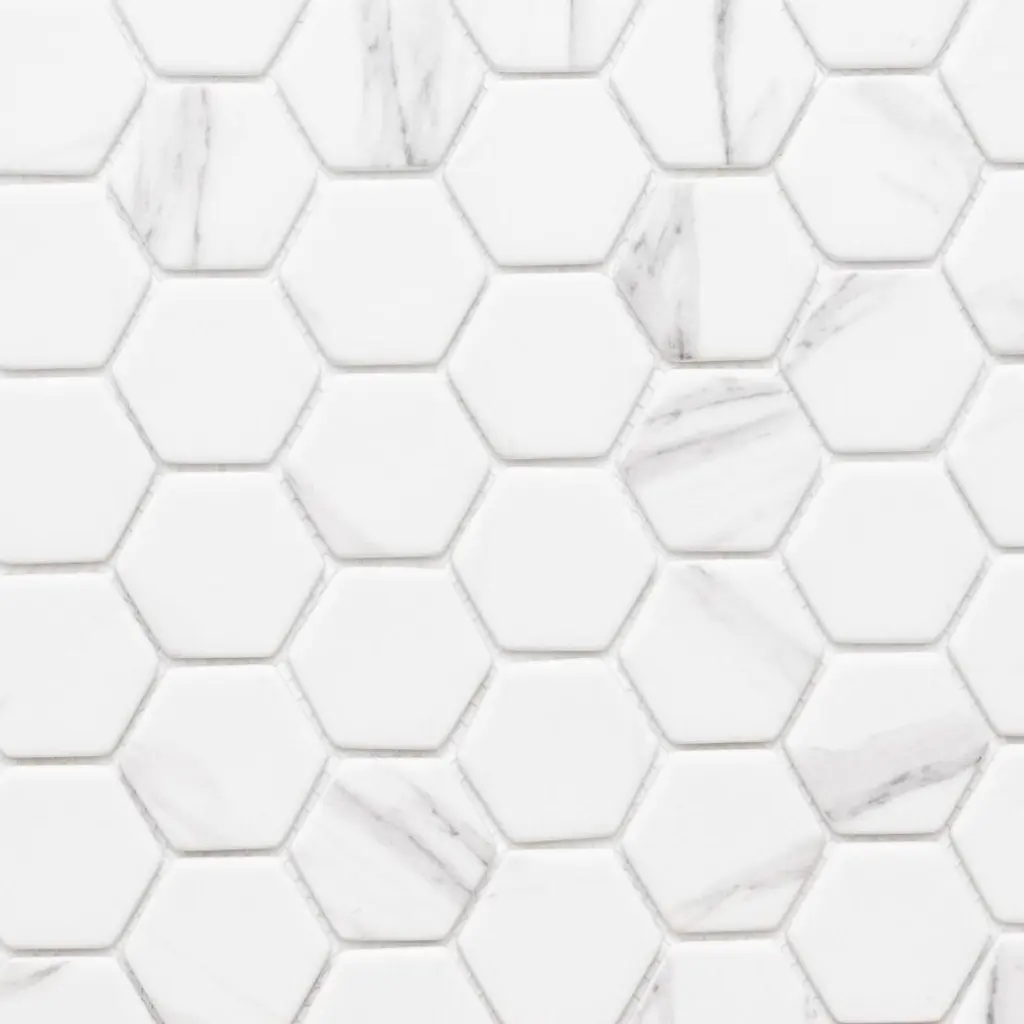 Recycled 1.88" X 1.88" Carrara Hexagon Glass Mosaic Backsplash Wall Tile - Case Of 14 (15.68 Sq. Ft.)